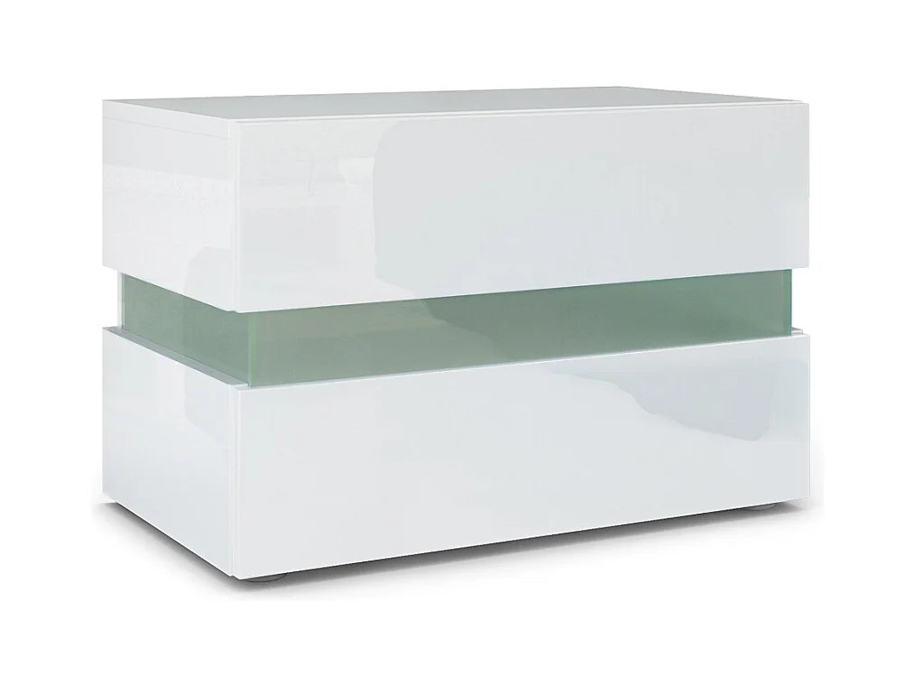 Table de chevet Flow, Table de nuit avec tiroir pour fixation murale, Blanc mat/Blanc haute brillance, éclairage LED inclus (60 x 45 x 39 cm)