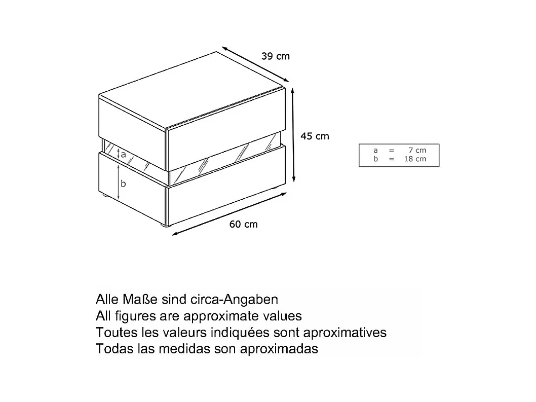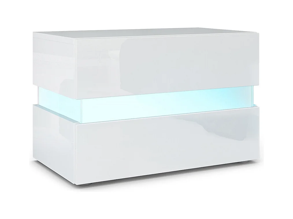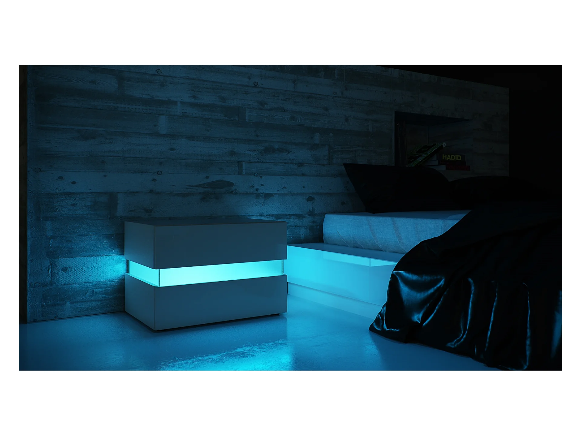 Table de chevet Flow, Table de nuit avec tiroir pour fixation murale, Blanc haute brillance/Blanc haute brillance, éclairage LED inclus (60 x 45 x 39 cm)