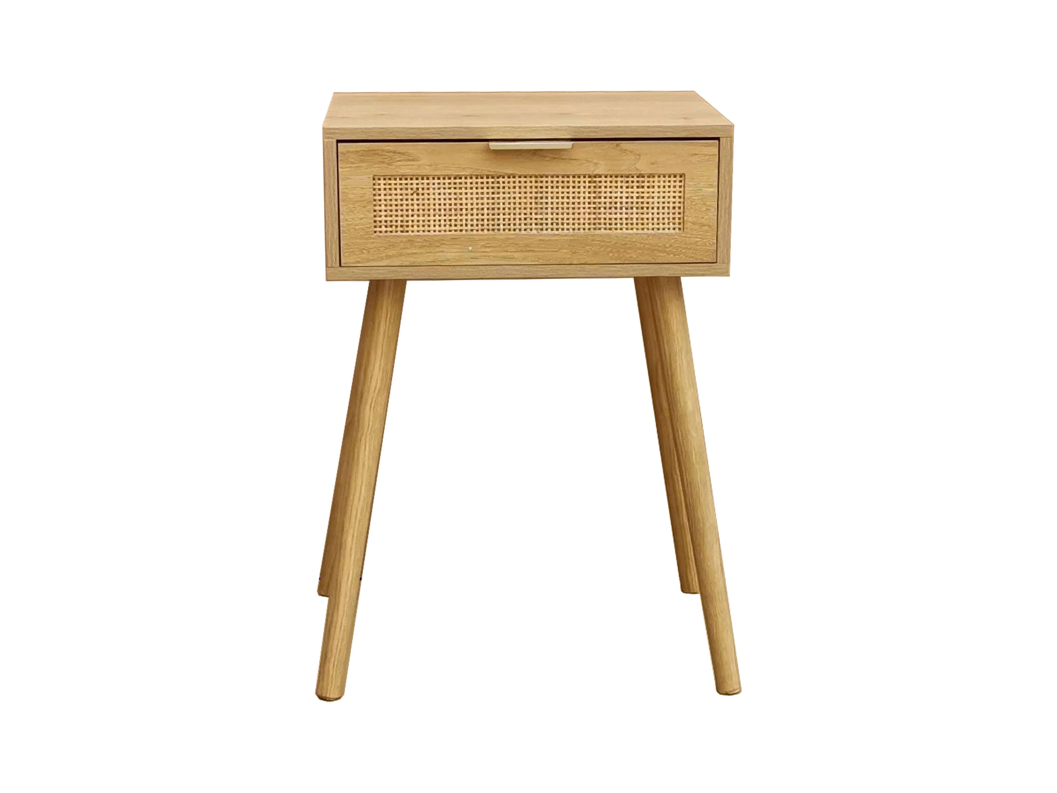 Table de chevet Frisa en pin et rotin de style naturel, 1 tiroir, 40x52x30 cm