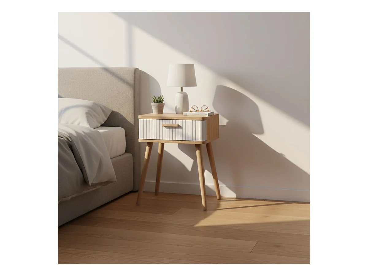 Table de chevet Frisa style nordique blanc/chêne 1 tiroir 40x52x30 cm