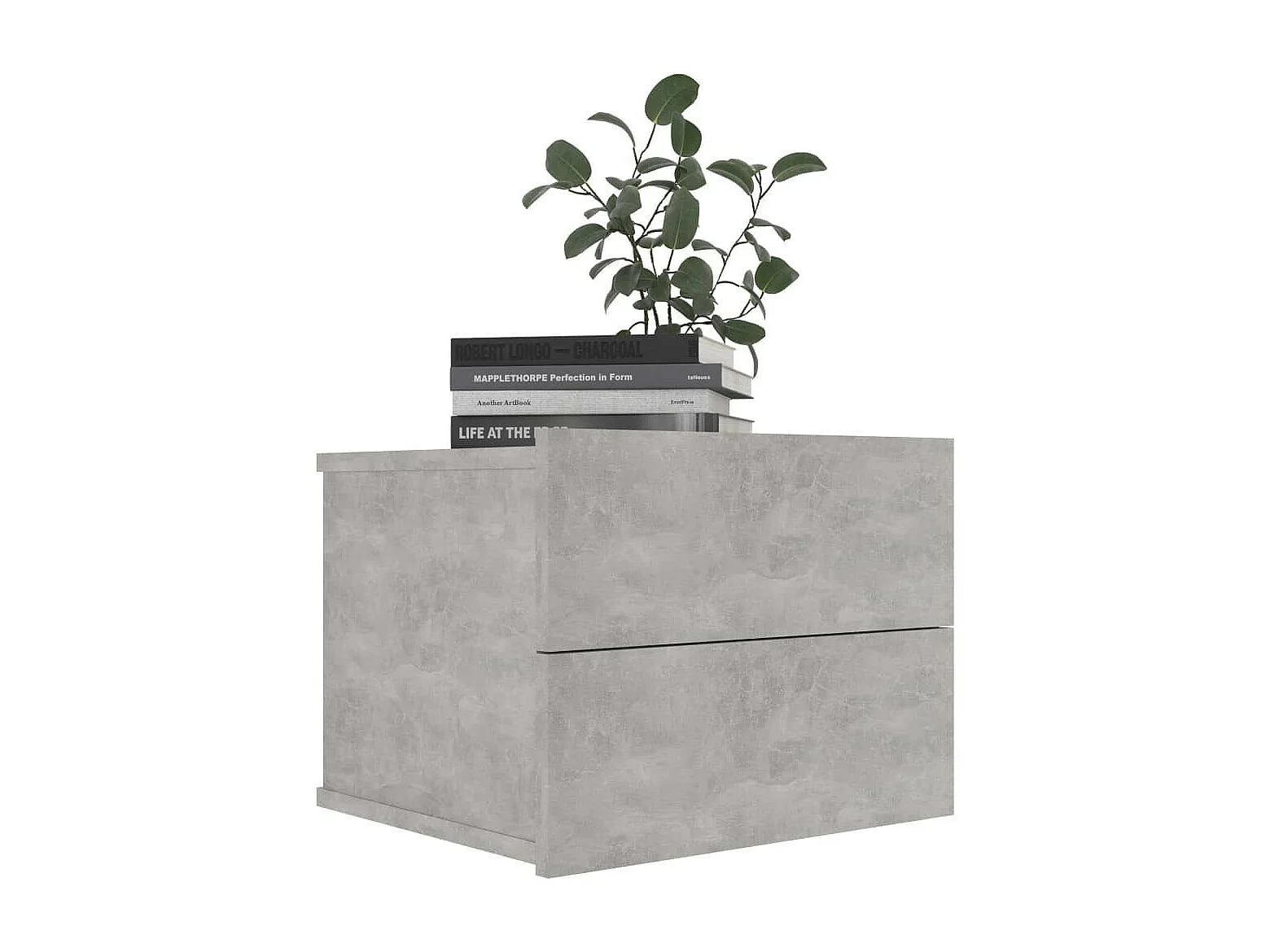 Table de chevet 2 tiroirs bois gris effet béton Ricio