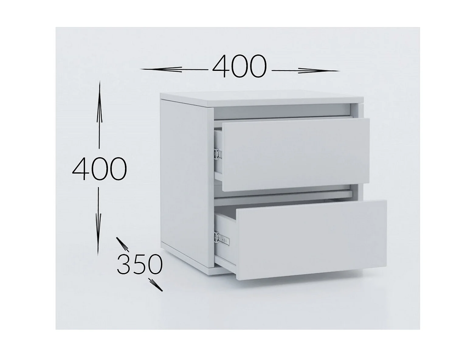 Table de chevet Pietro, Table de nuit avec 2 tiroirs, Armoire de chambre, 100% Made in Italy, 50x40h41 cm, Blanc brillant