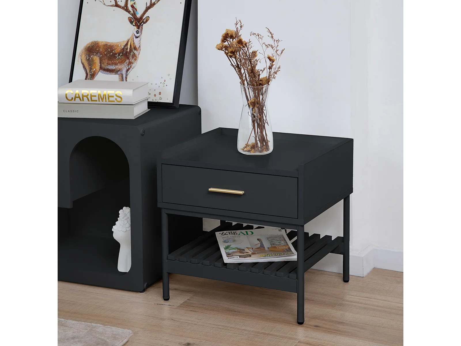 Table de chevet KORE avec tiroir Table de nuit Table de nuit Noir