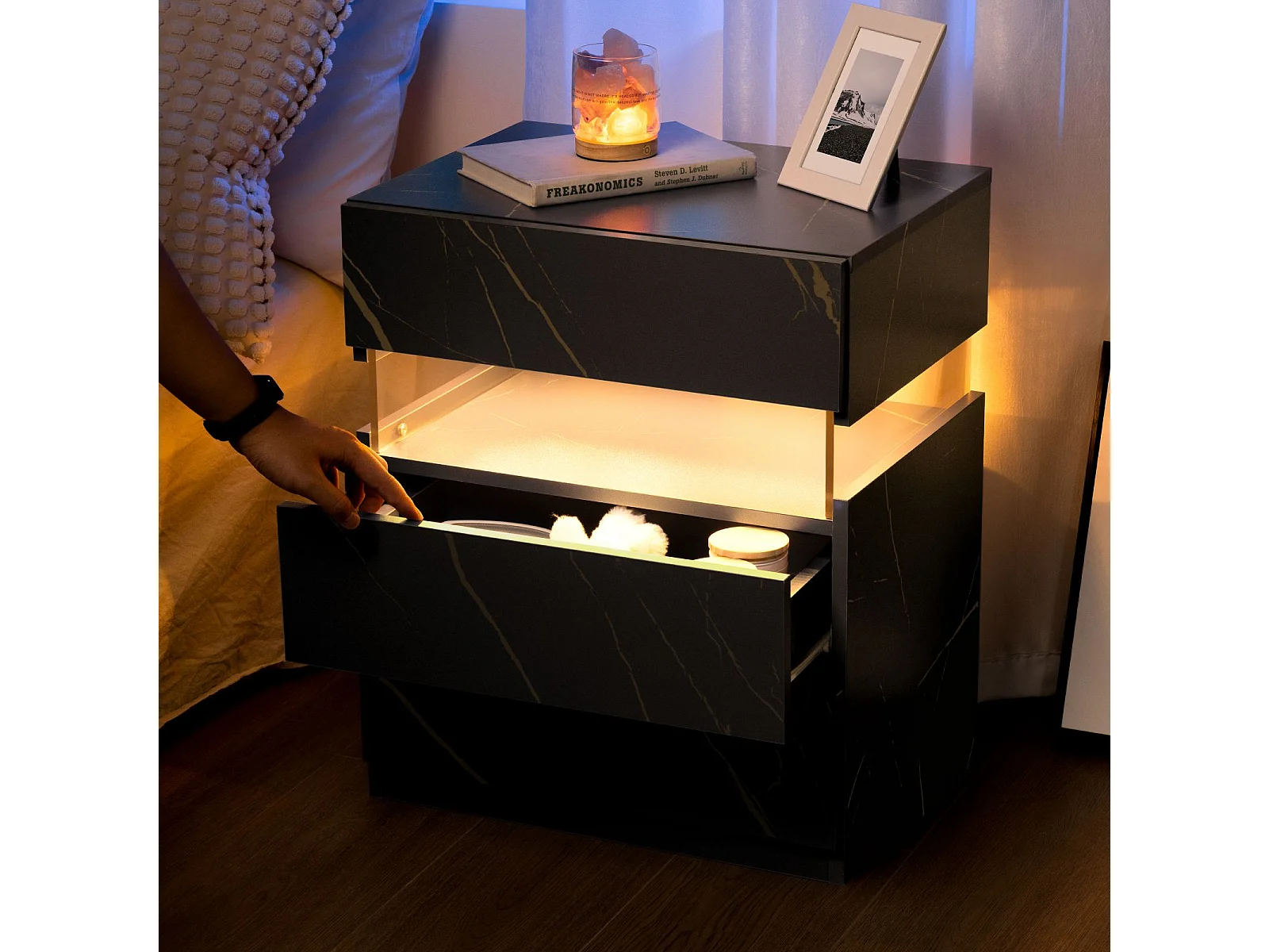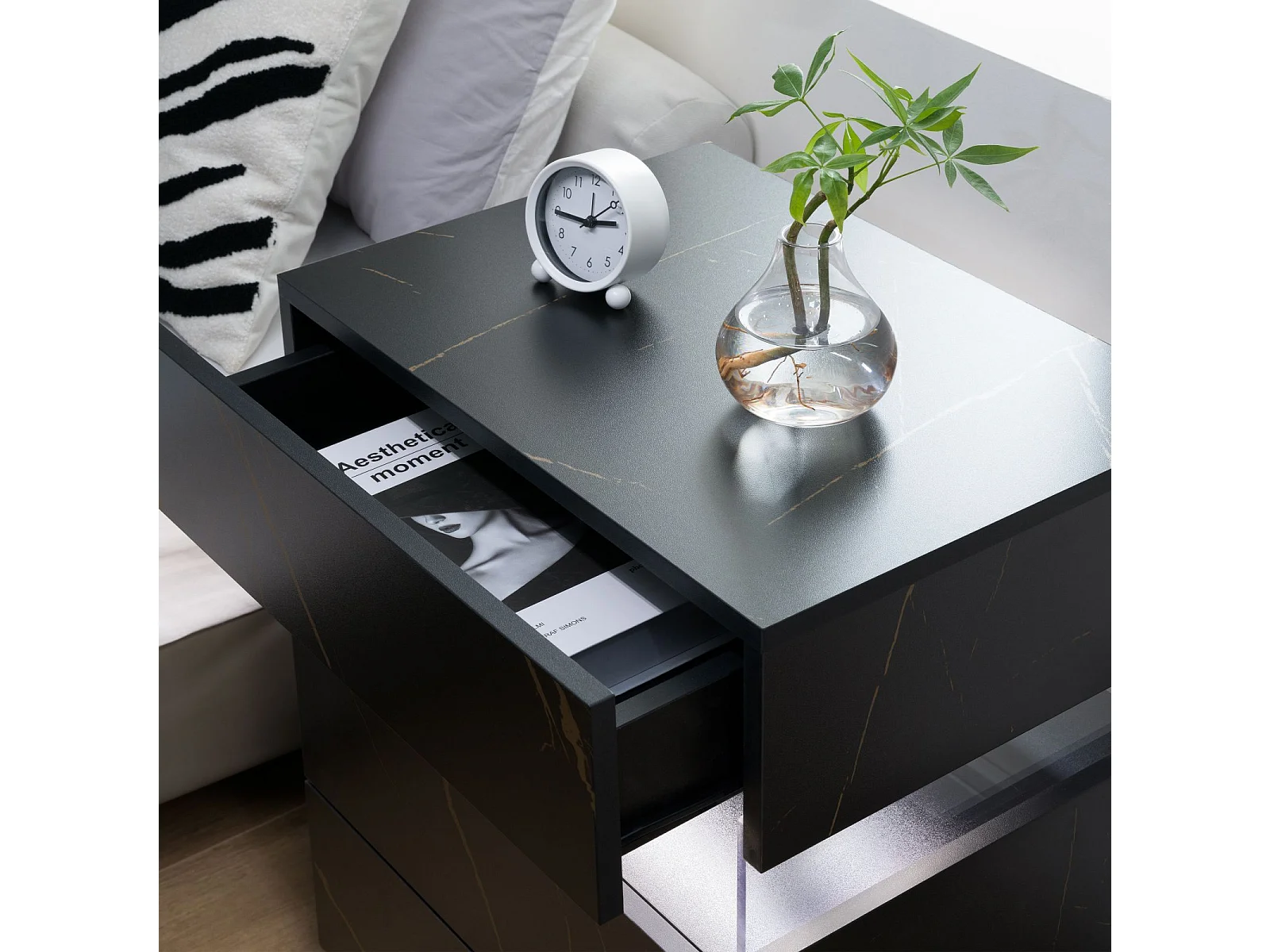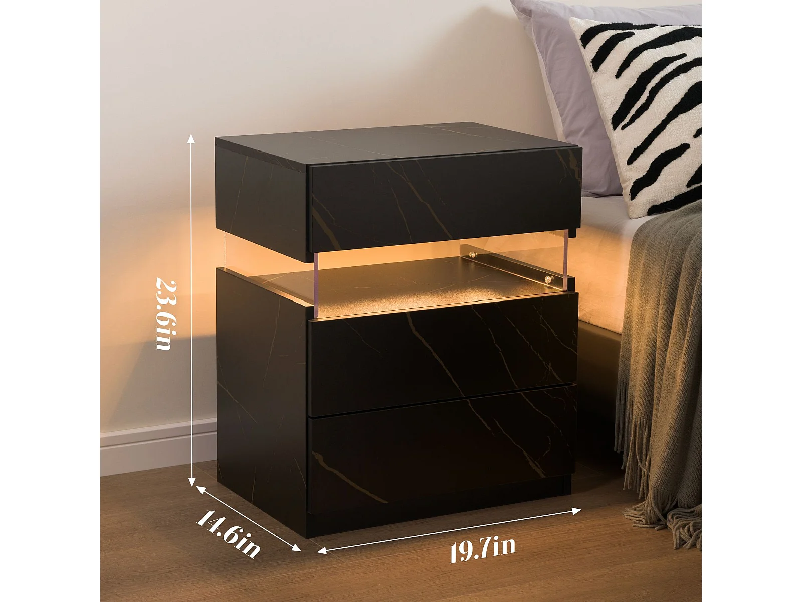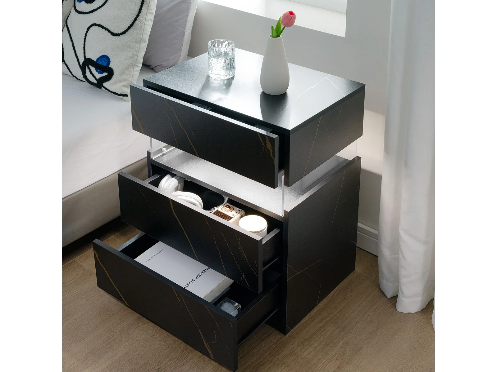 Table de chevet LED avec 3 tiroirs, table de chevet LED acrylique, noir+or, MDF, (48x38x61cm)