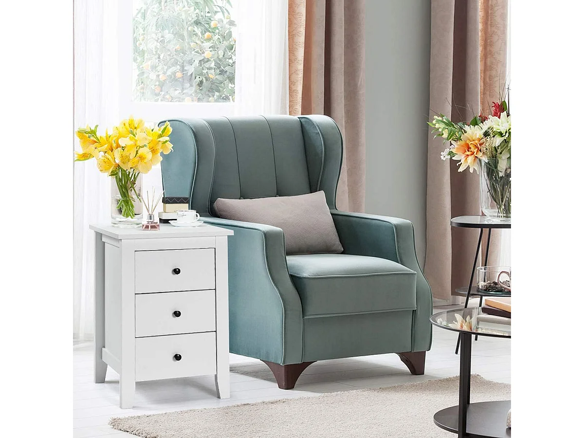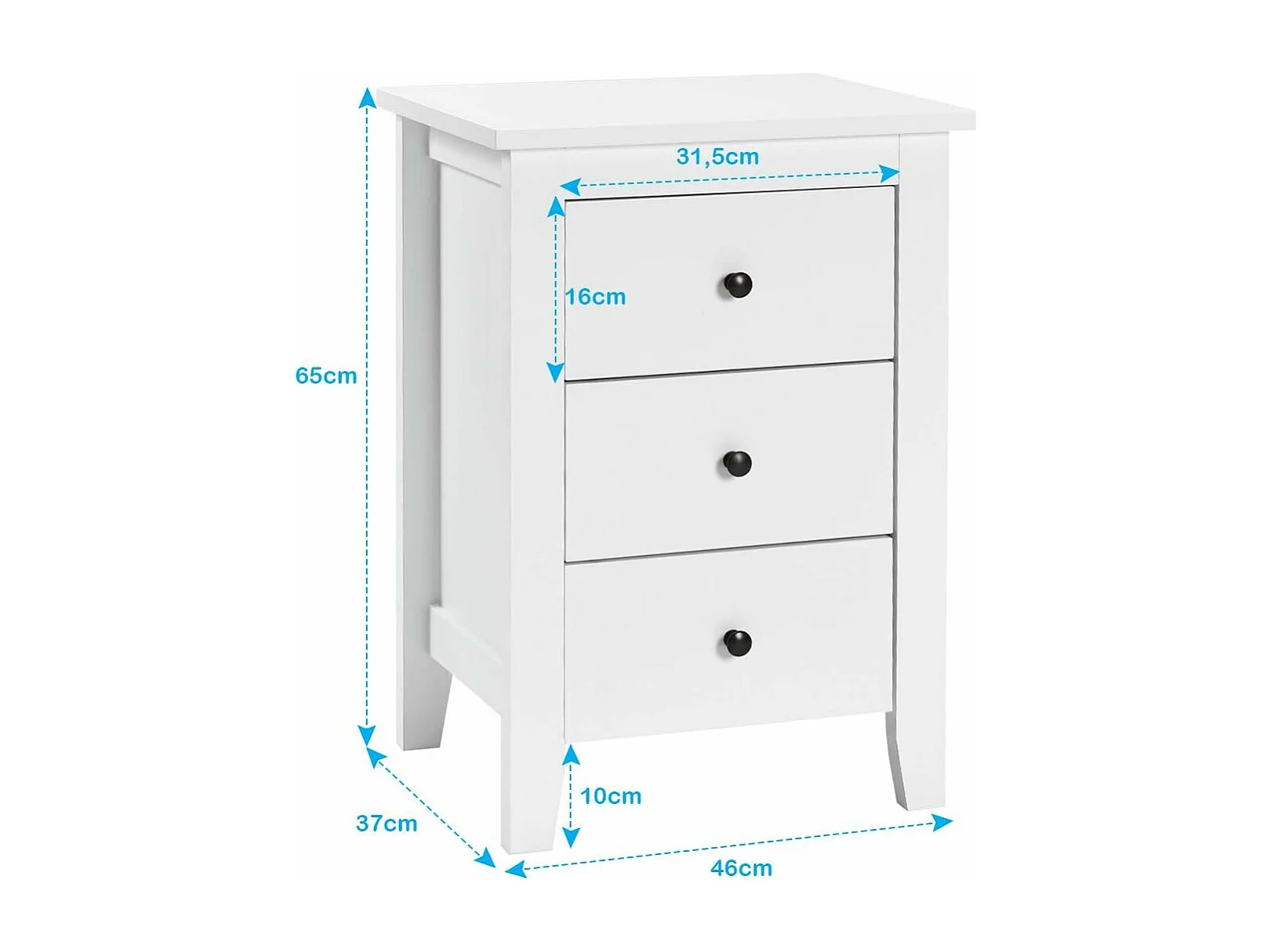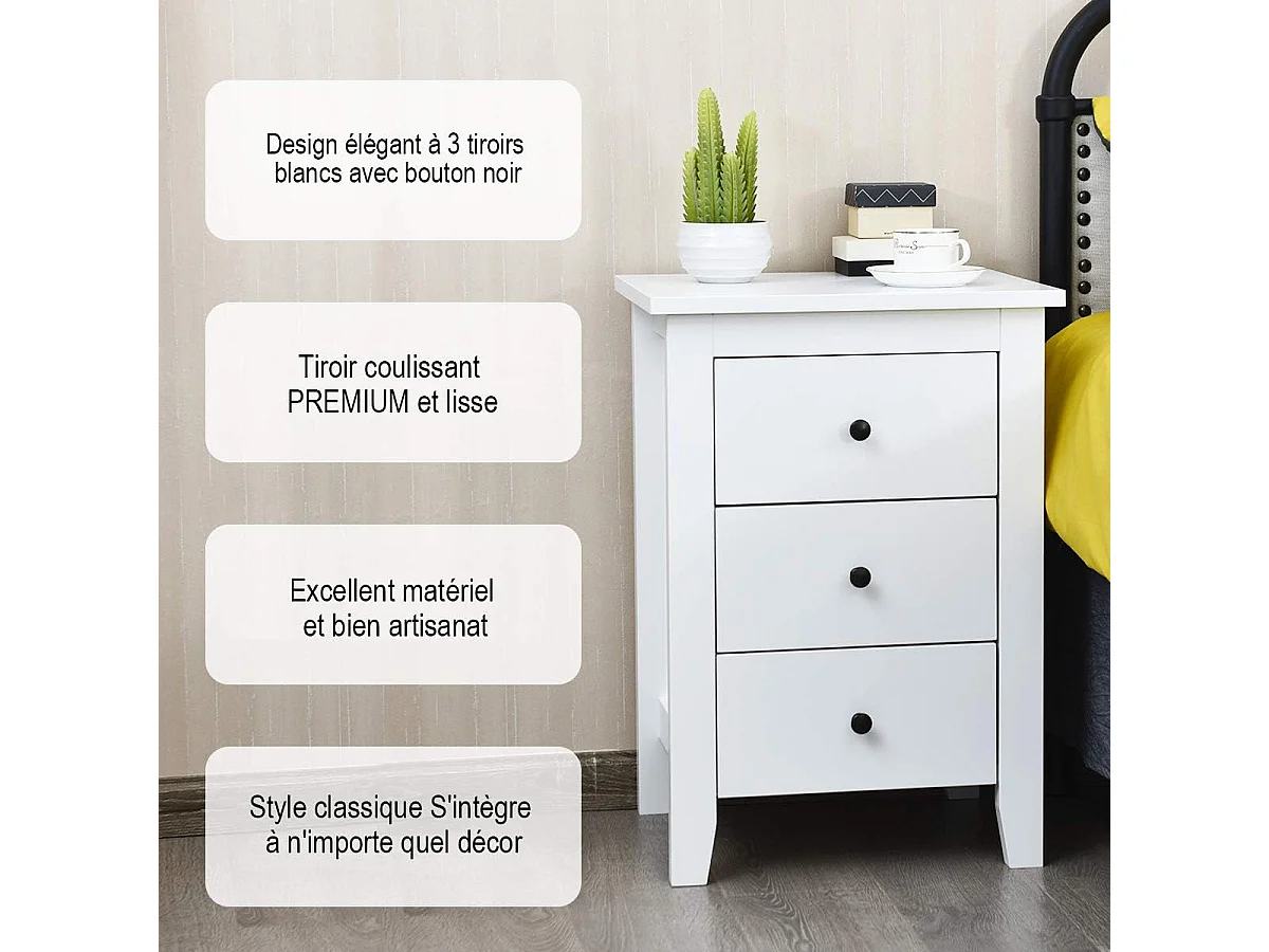 Table de Chevet Lot de 2 avec 3 Tiroirs, Table de Nuit Moderne pour Chambre à Coucher, Bout de Canapé pour Salon, 46 x 37 x 65 cm, Blanc