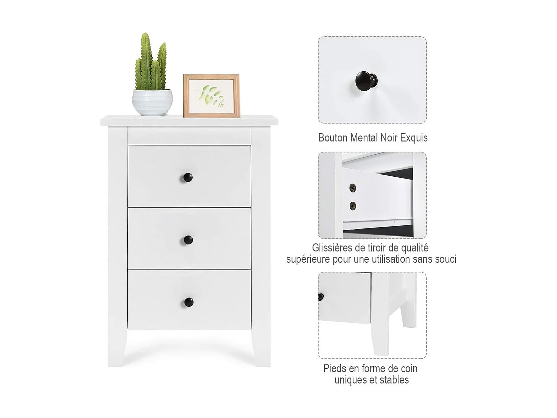 Table de chevet VIKEN blanc bois d'ingénierie FR76888