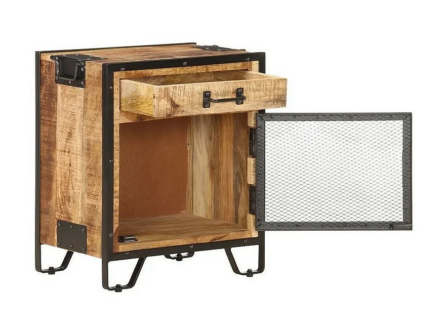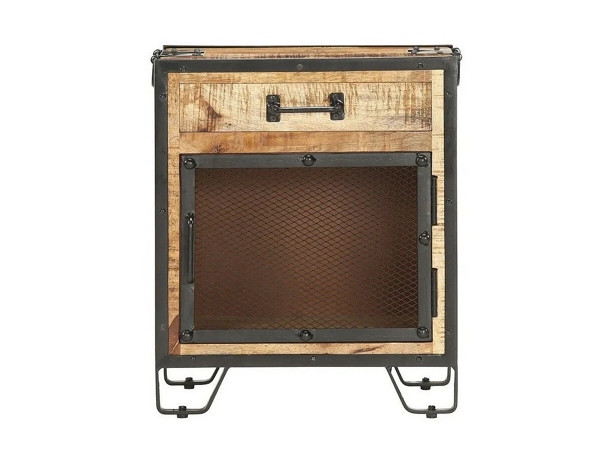 Table de chevet manguier massif clair et métal noir Pikka