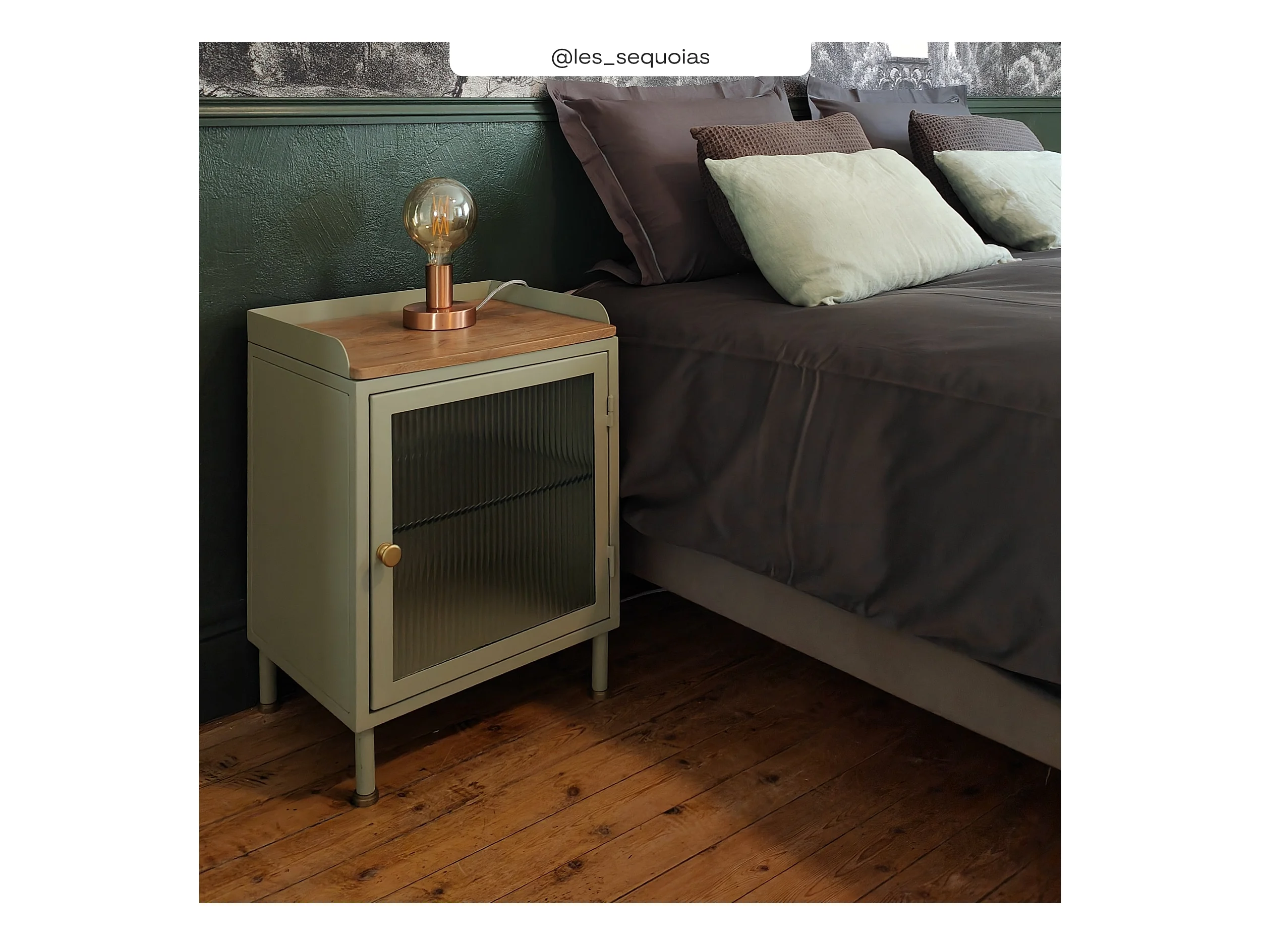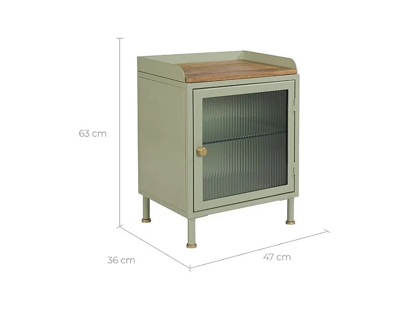 Table de chevet en verre, métal et bois 1 porte - Marnie