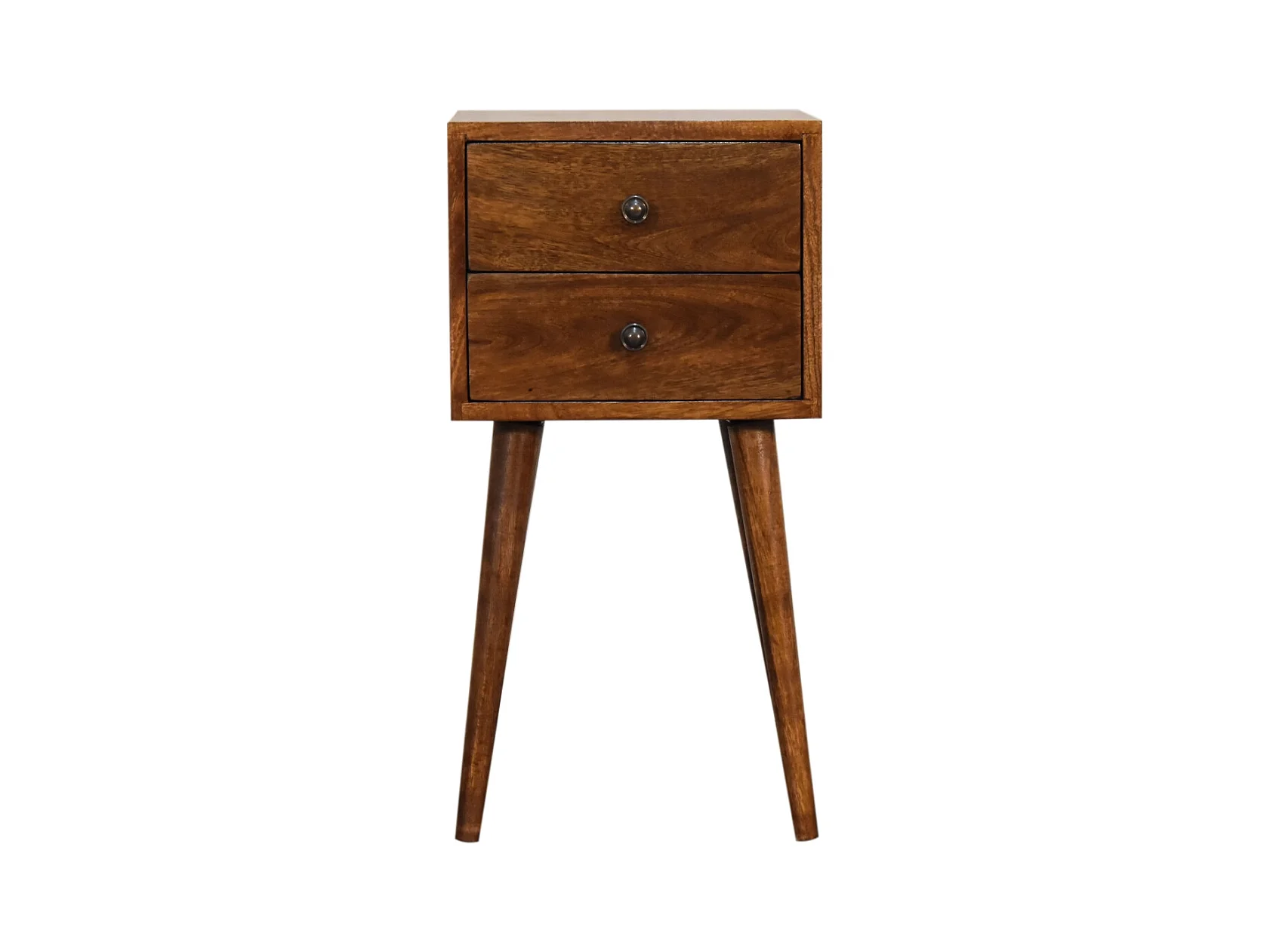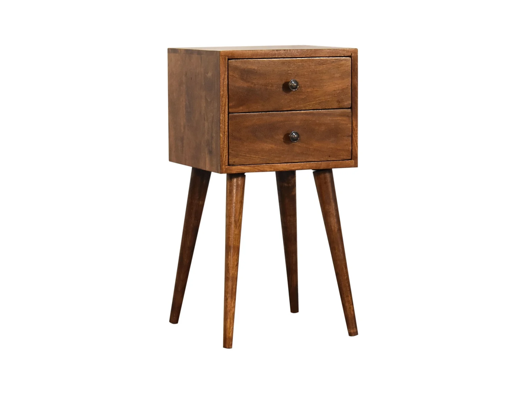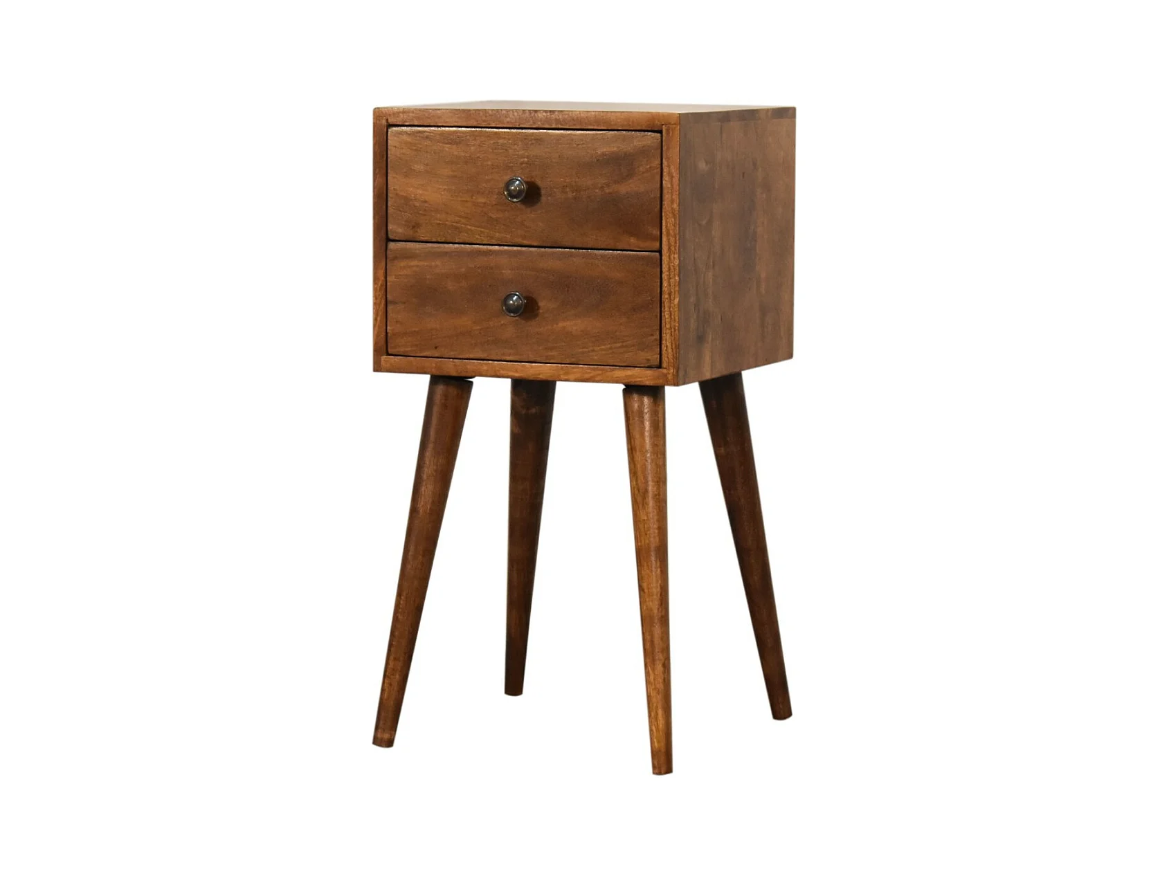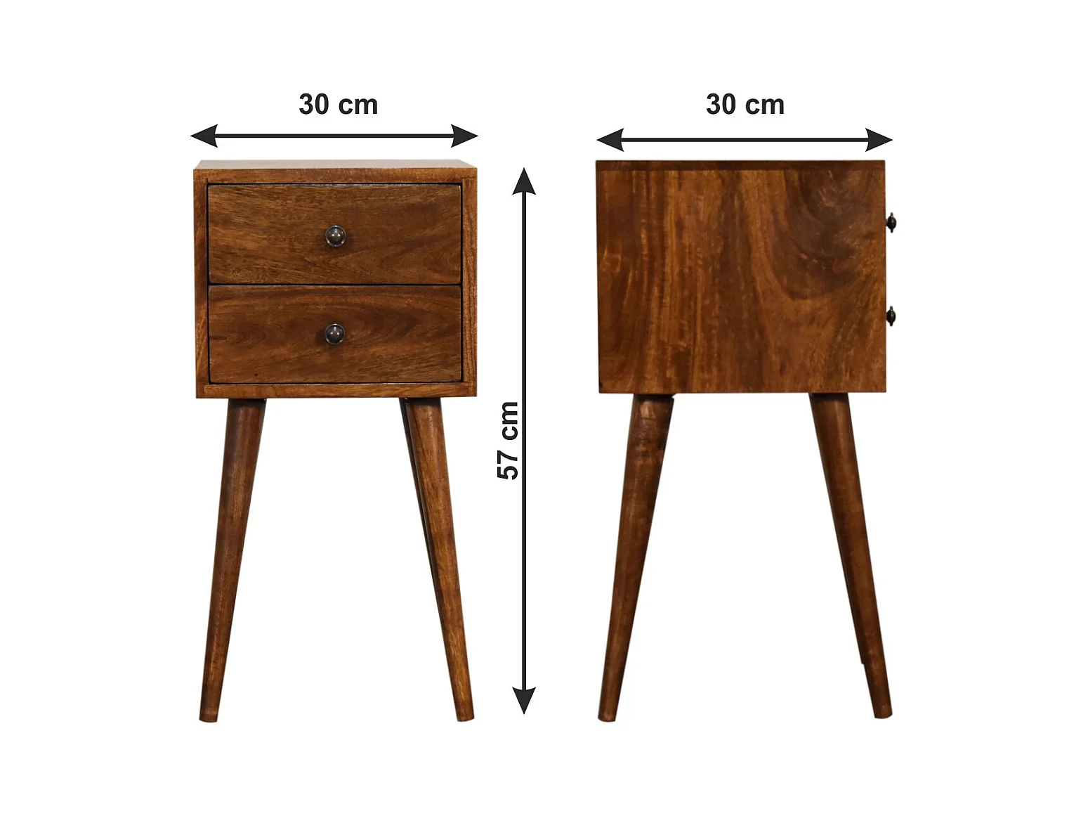 Table de Chevet Bali 2 tiroir, Fabriqué en Bois de pin Massif