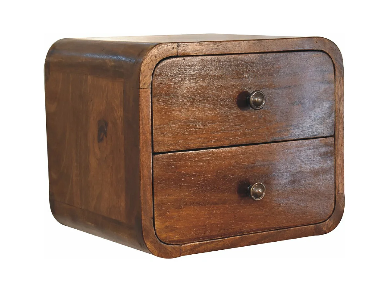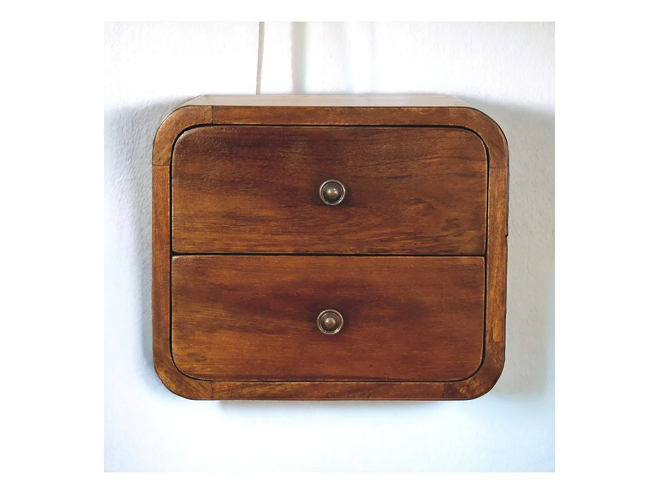Artisan Furniture Table de nuit murale Solis 2 tiroirs en bois massif finition châtaignier