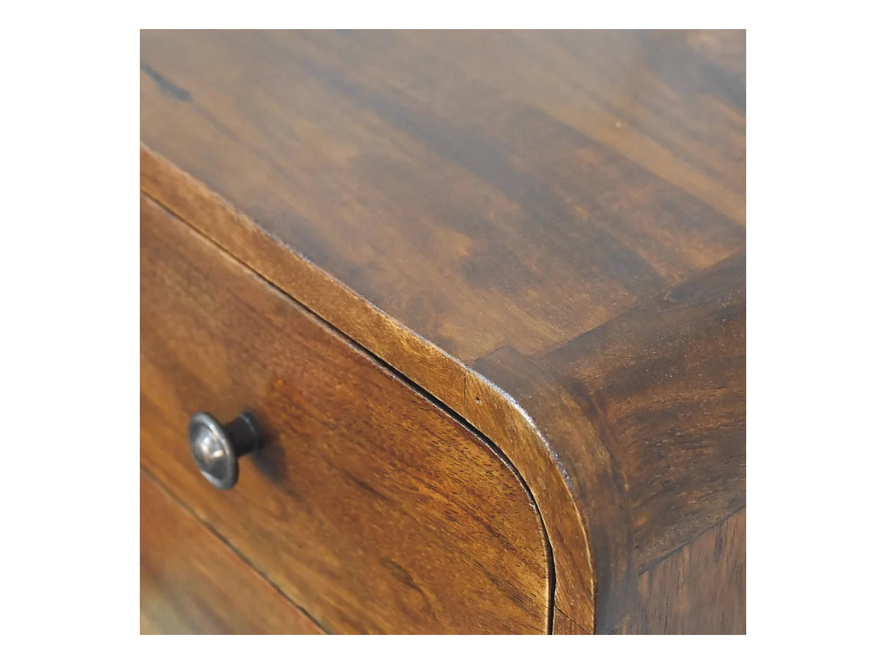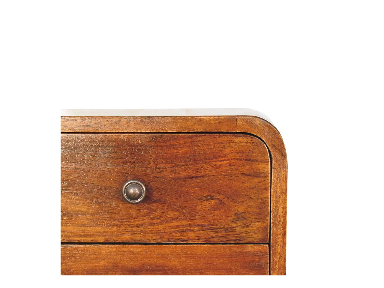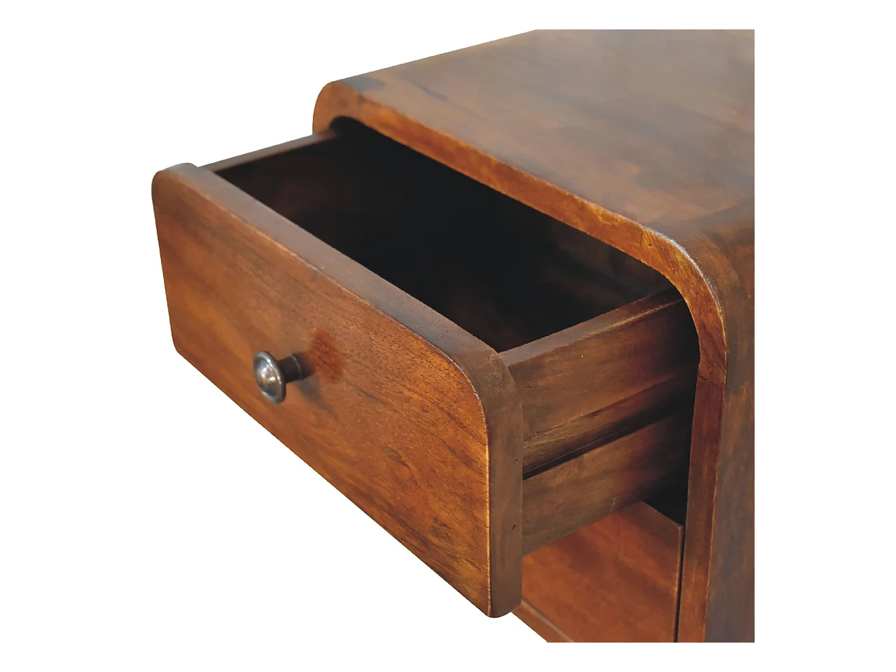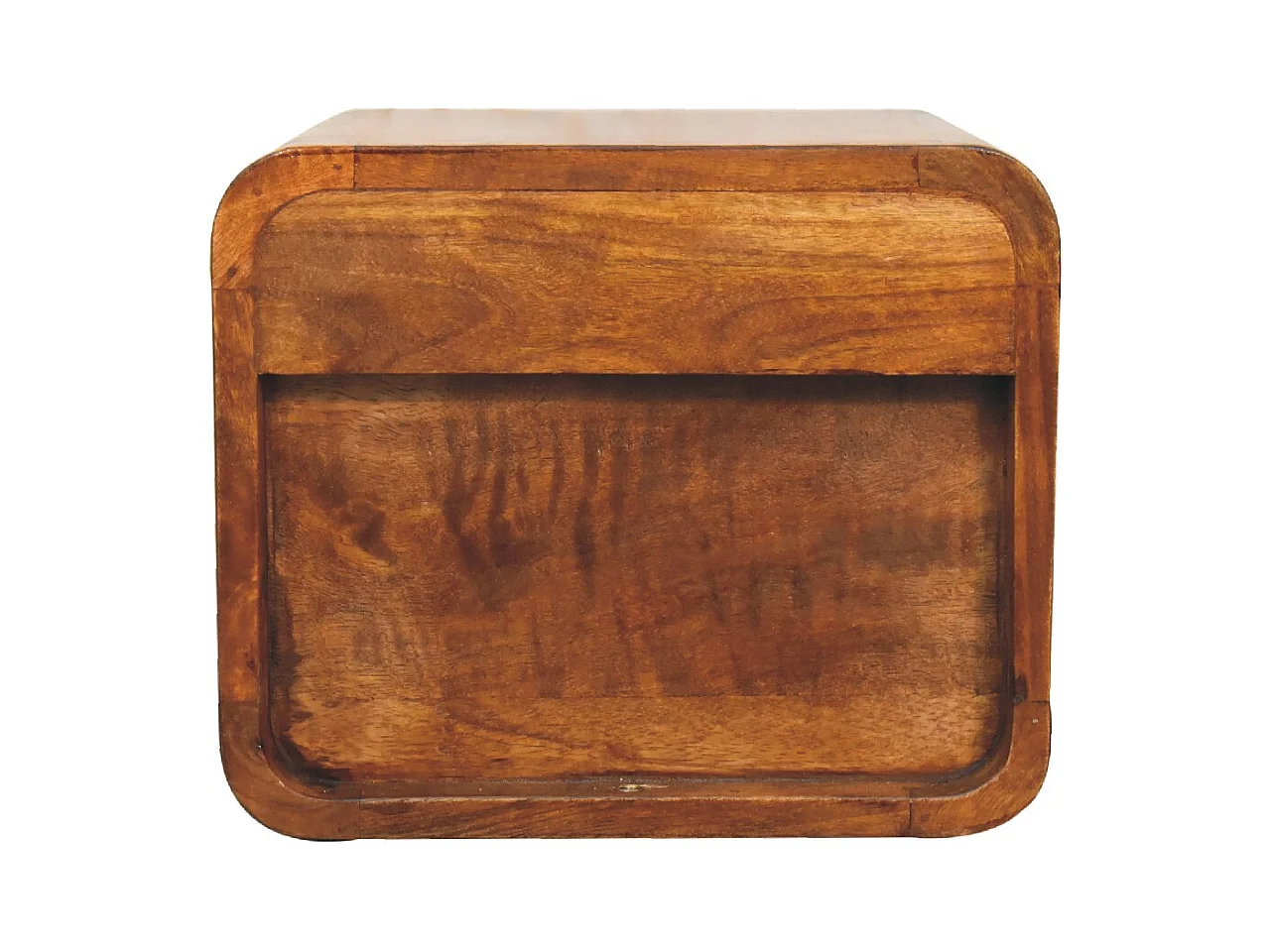 Mini Table de Nuit Cube en Châtaignier à 2 Tiroirs