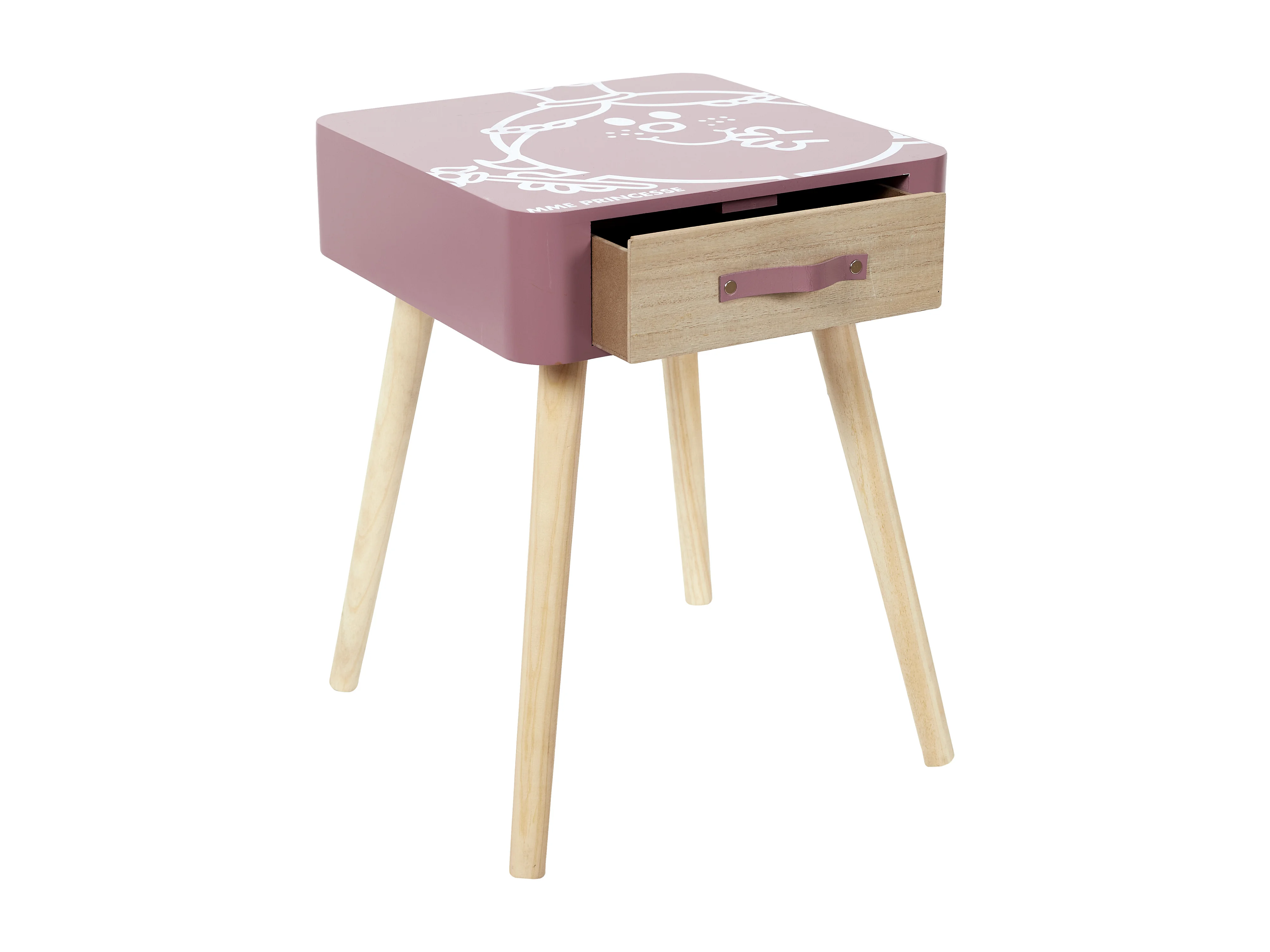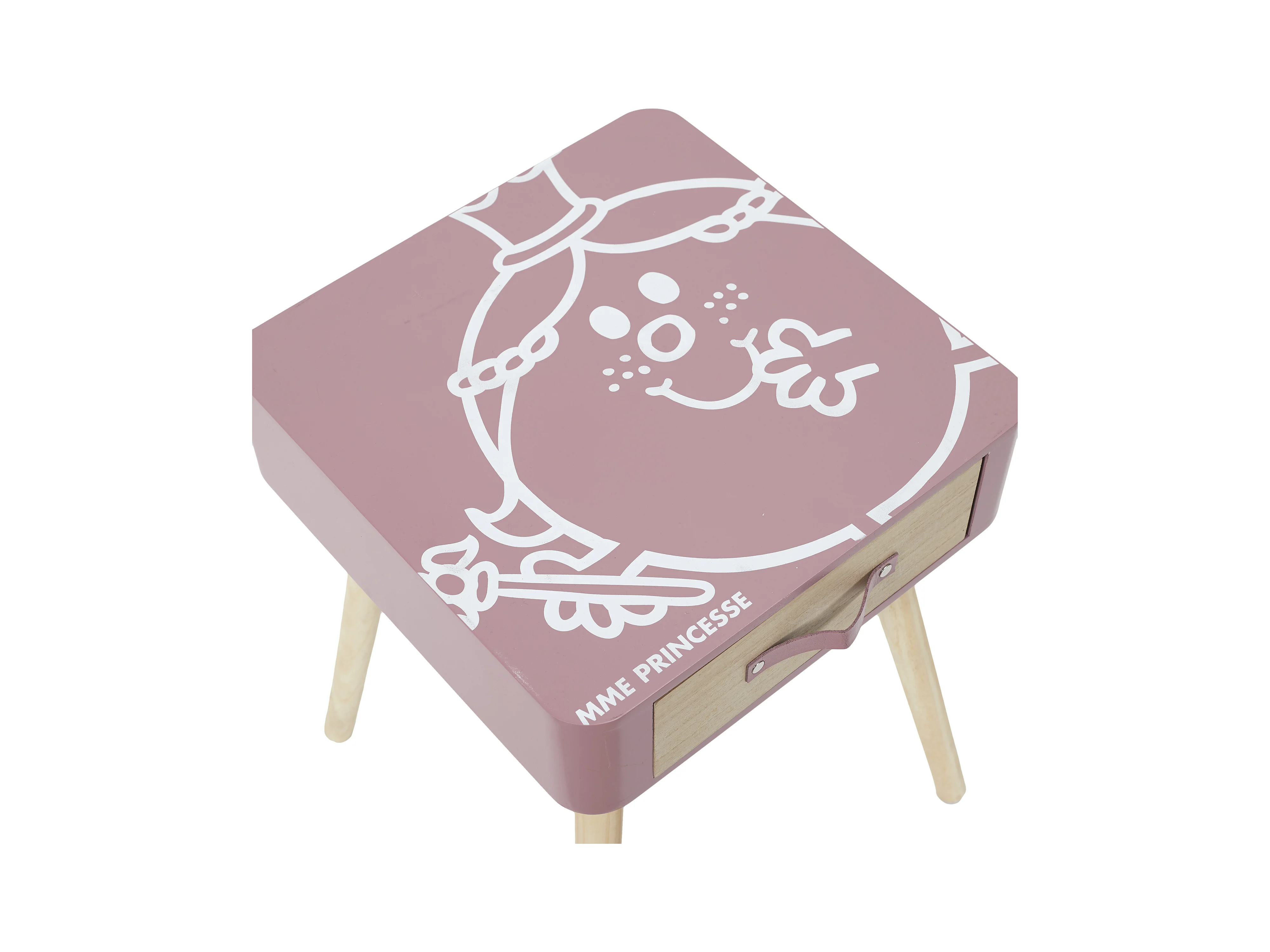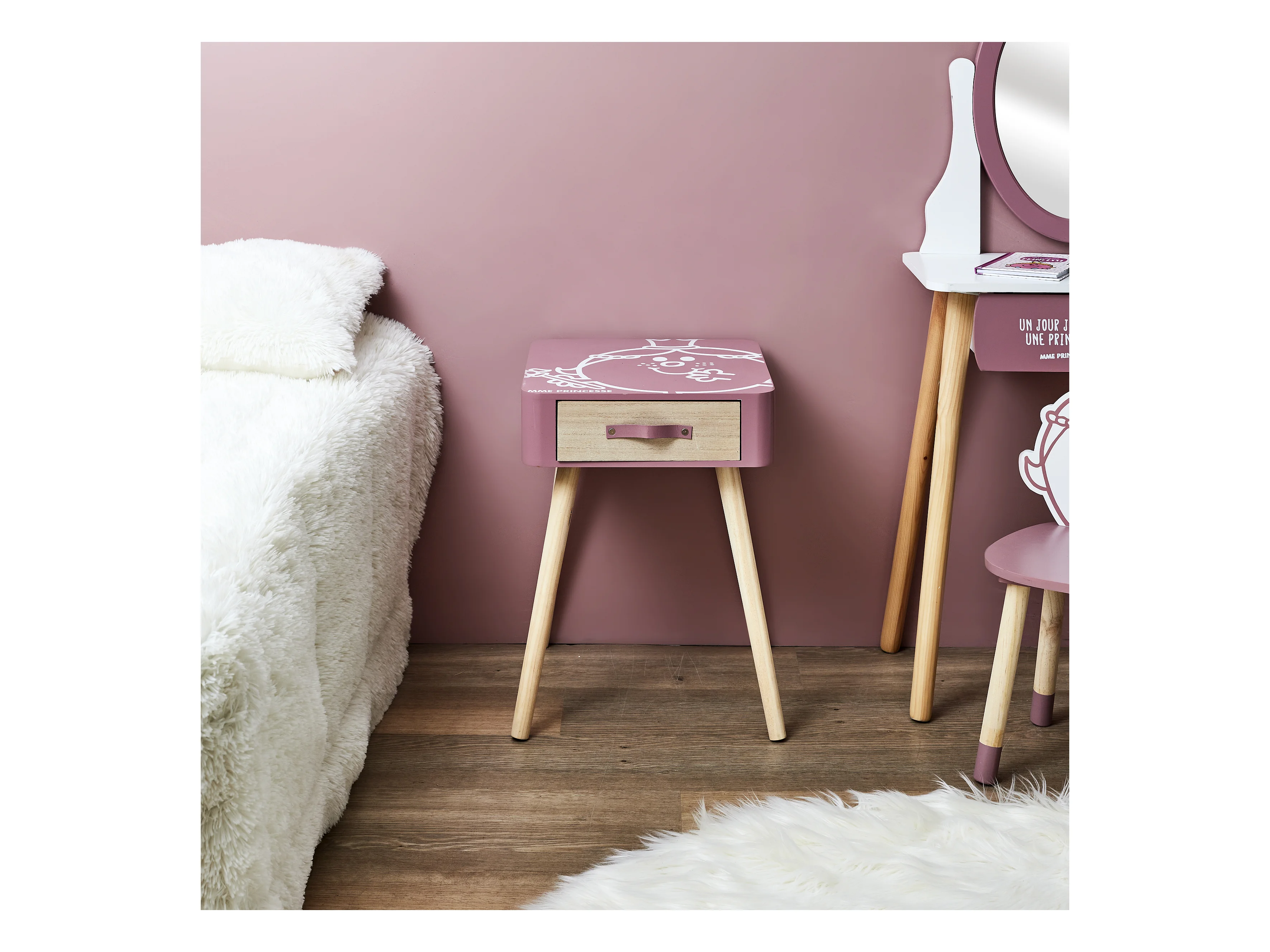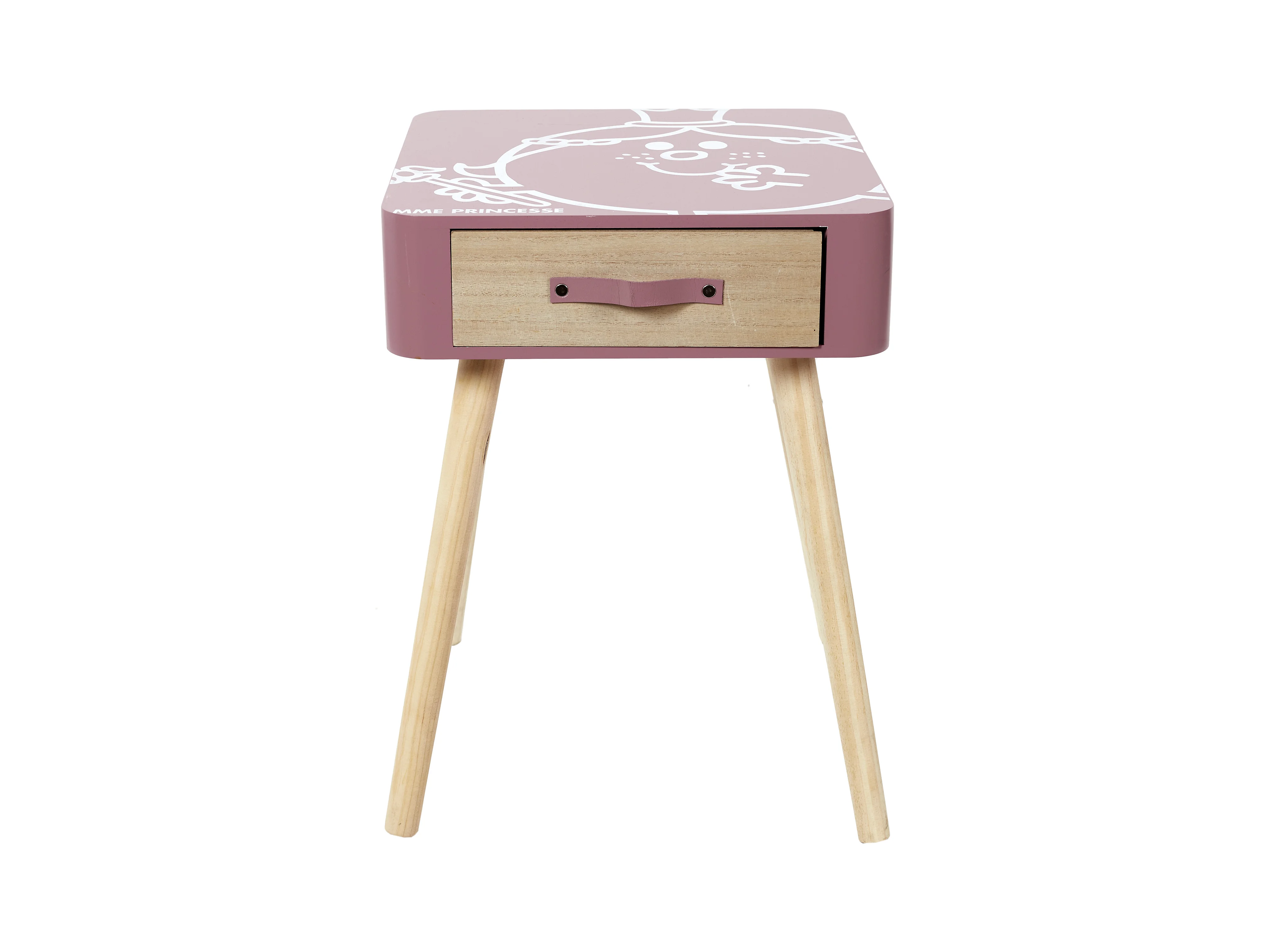 Table de chevet 1 tiroir en bois MONSIEUR MADAME série MME PRINCESSE rose