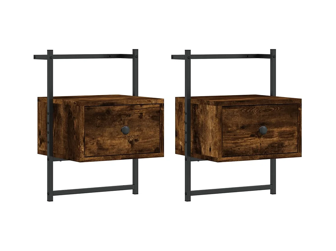 Table de chevet murale 2 pcs chêne fumé 35x30x51