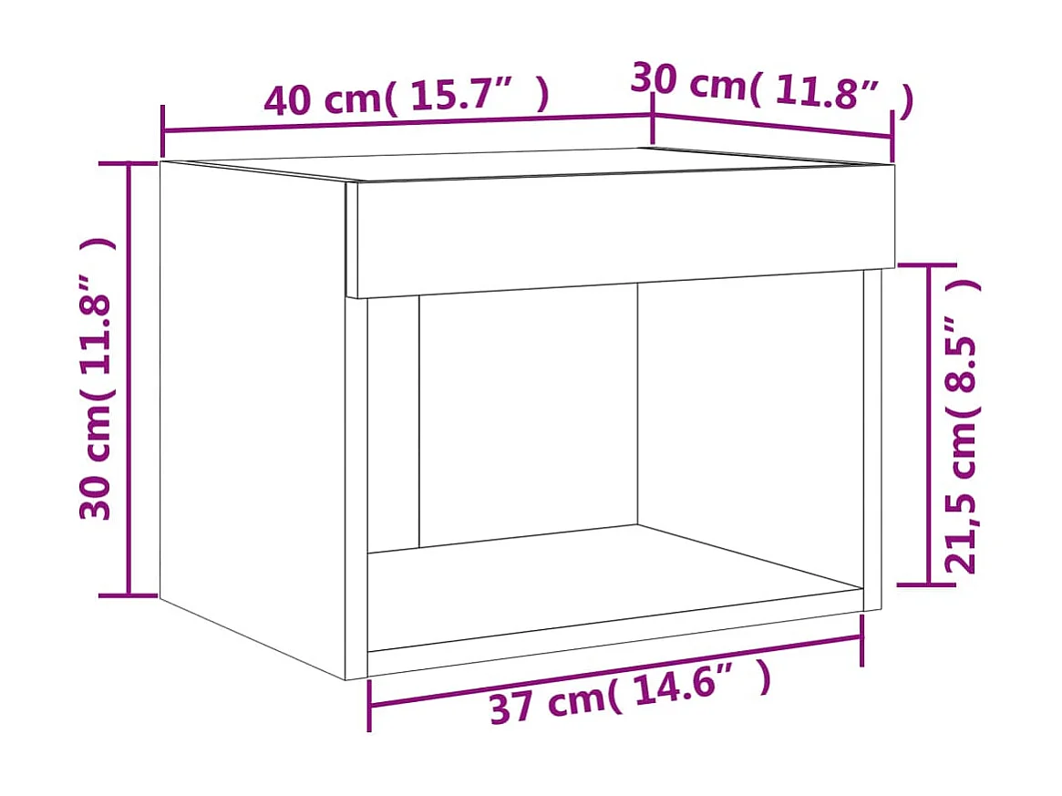 Table de chevet 100 % aggloméré plaqué mélamine, couleur chêne béton foncé 50x55x40