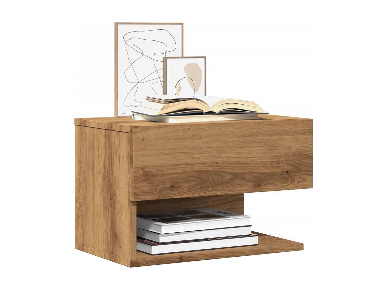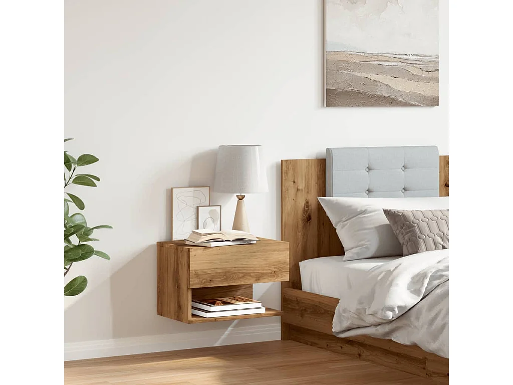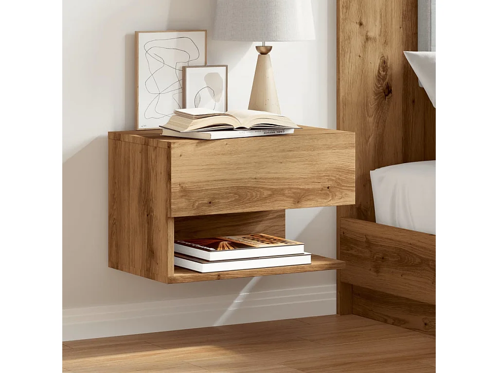 Cabinet de chevet avec LED en chêne artisanal 50x36x30 cm