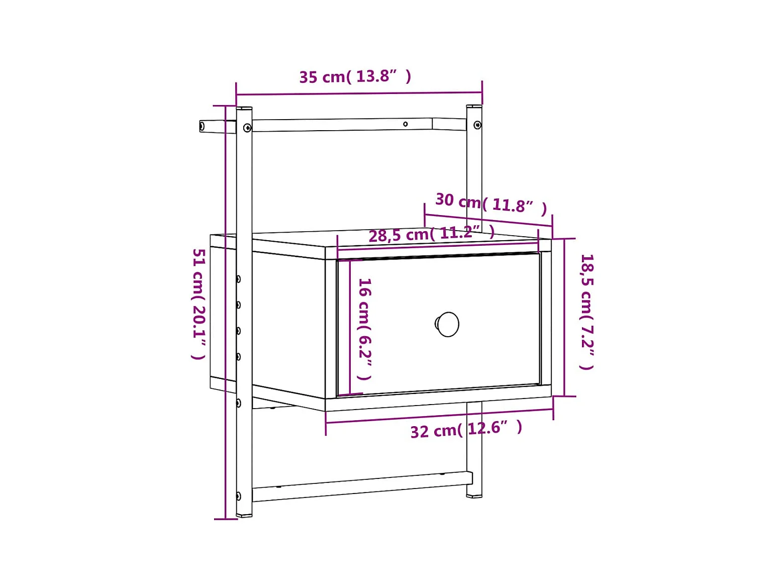 Table de chevet murale 2 pcs chêne fumé 35x30x51