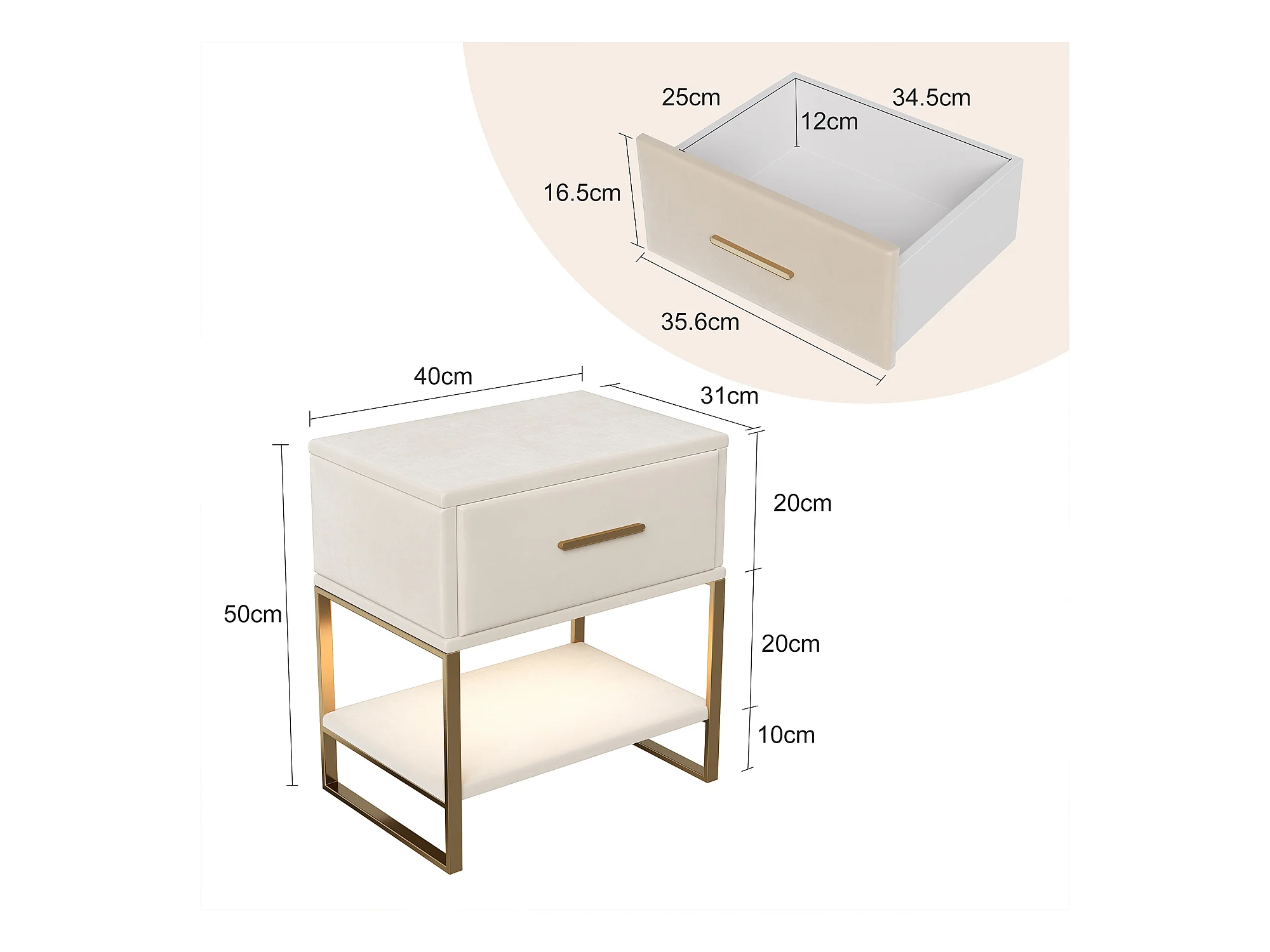Table de Chevet - NEXU - Lot de 2 - 40x31x50 cm - Meuble de Nuit avec LED - Meuble de Chambre - tissu en velvet - beige