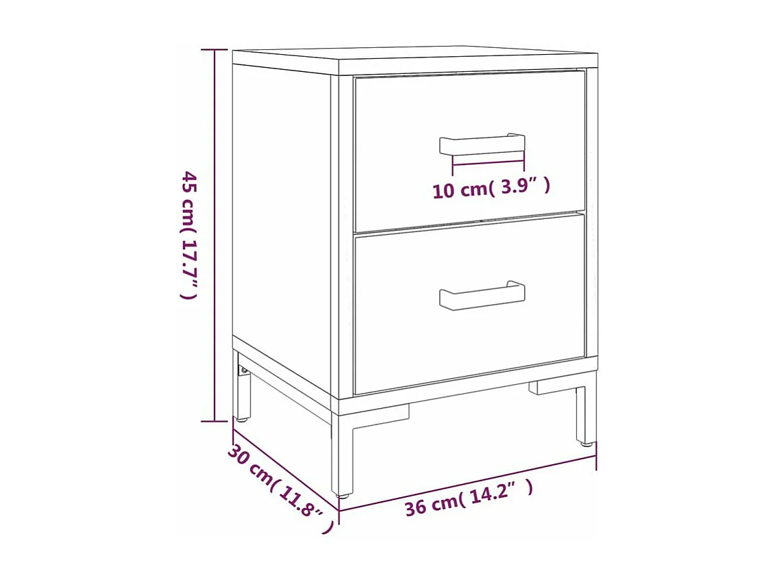 Table de chevet noir 40x30x50 bois massif manguier et fer