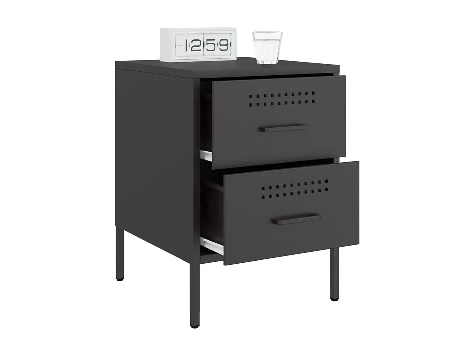 Table de chevet Flow, Table de nuit avec tiroir pour fixation murale, Noir mat/Noir haute brillance (60 x 45 x 39 cm)