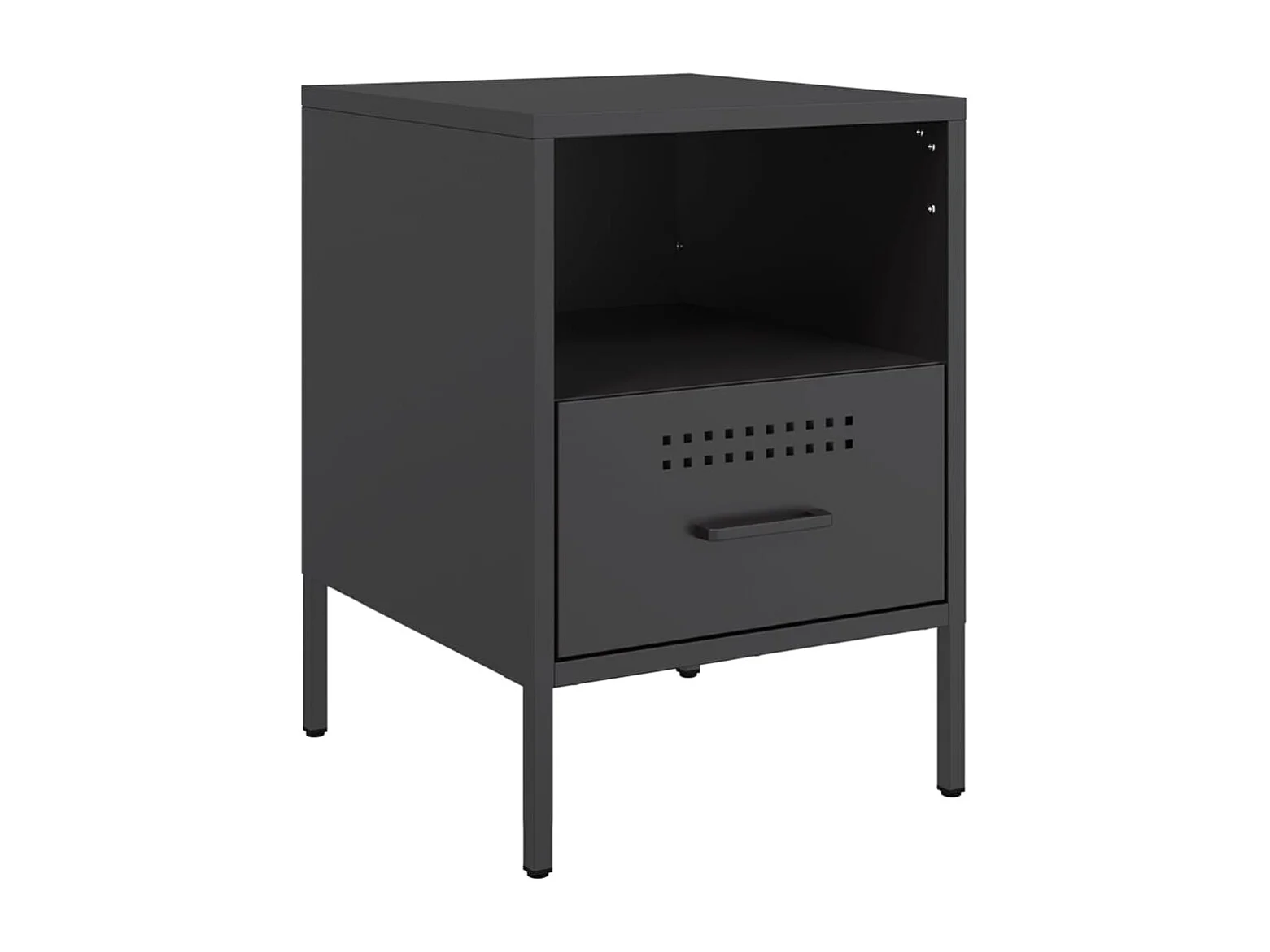Table de chevet Flow, Table de nuit avec tiroir pour fixation murale, Noir mat/Noir haute brillance (60 x 45 x 39 cm)