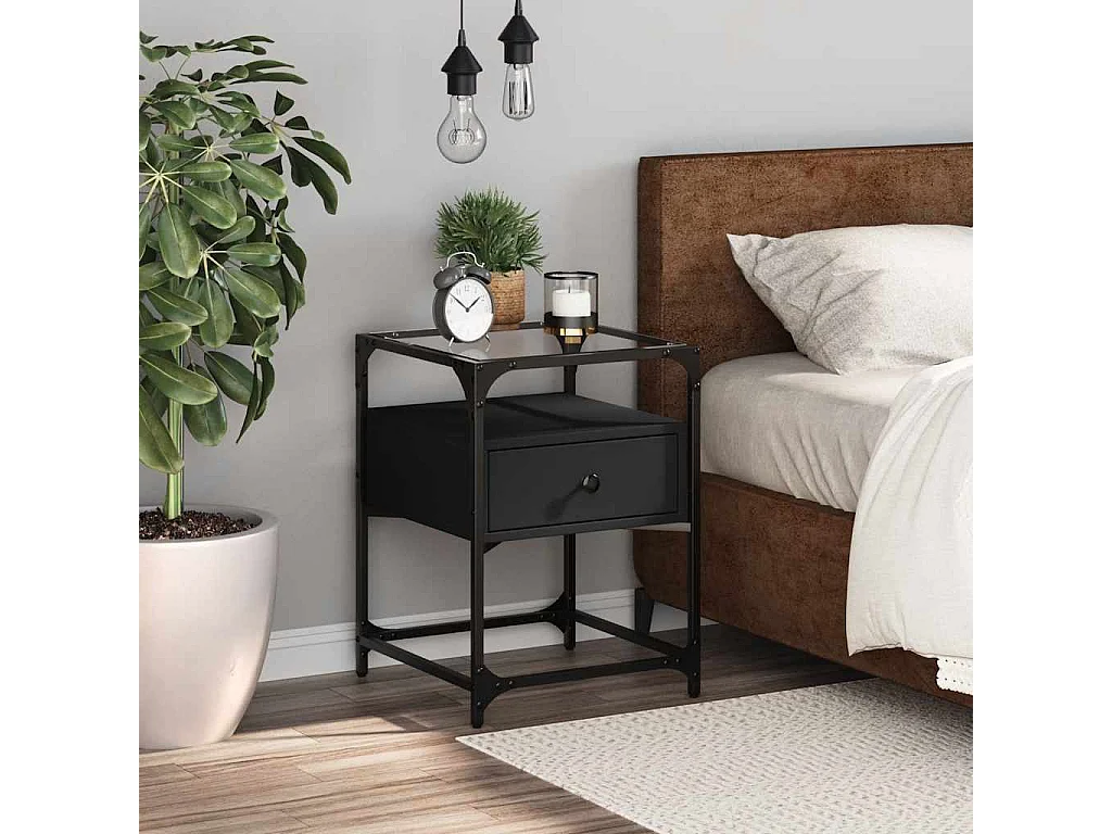Table de chevet noir 40x40x55 cm bois d'ingénierie