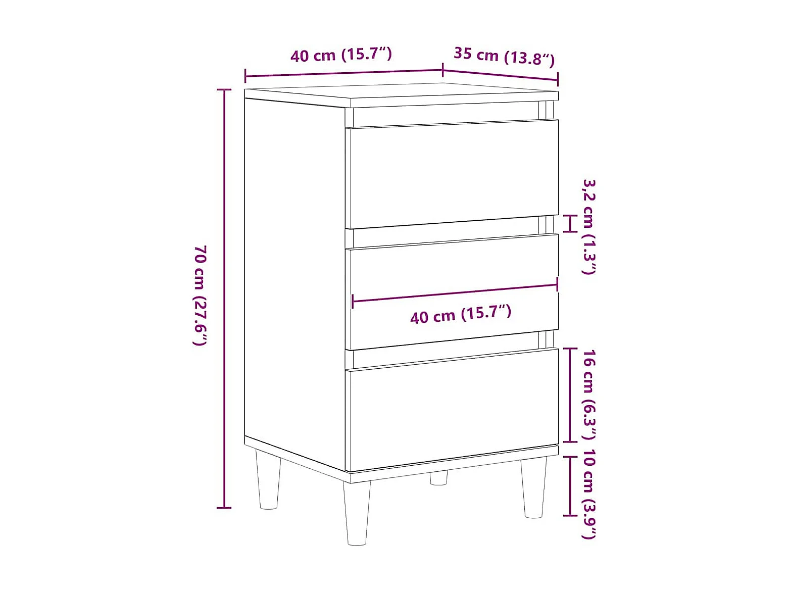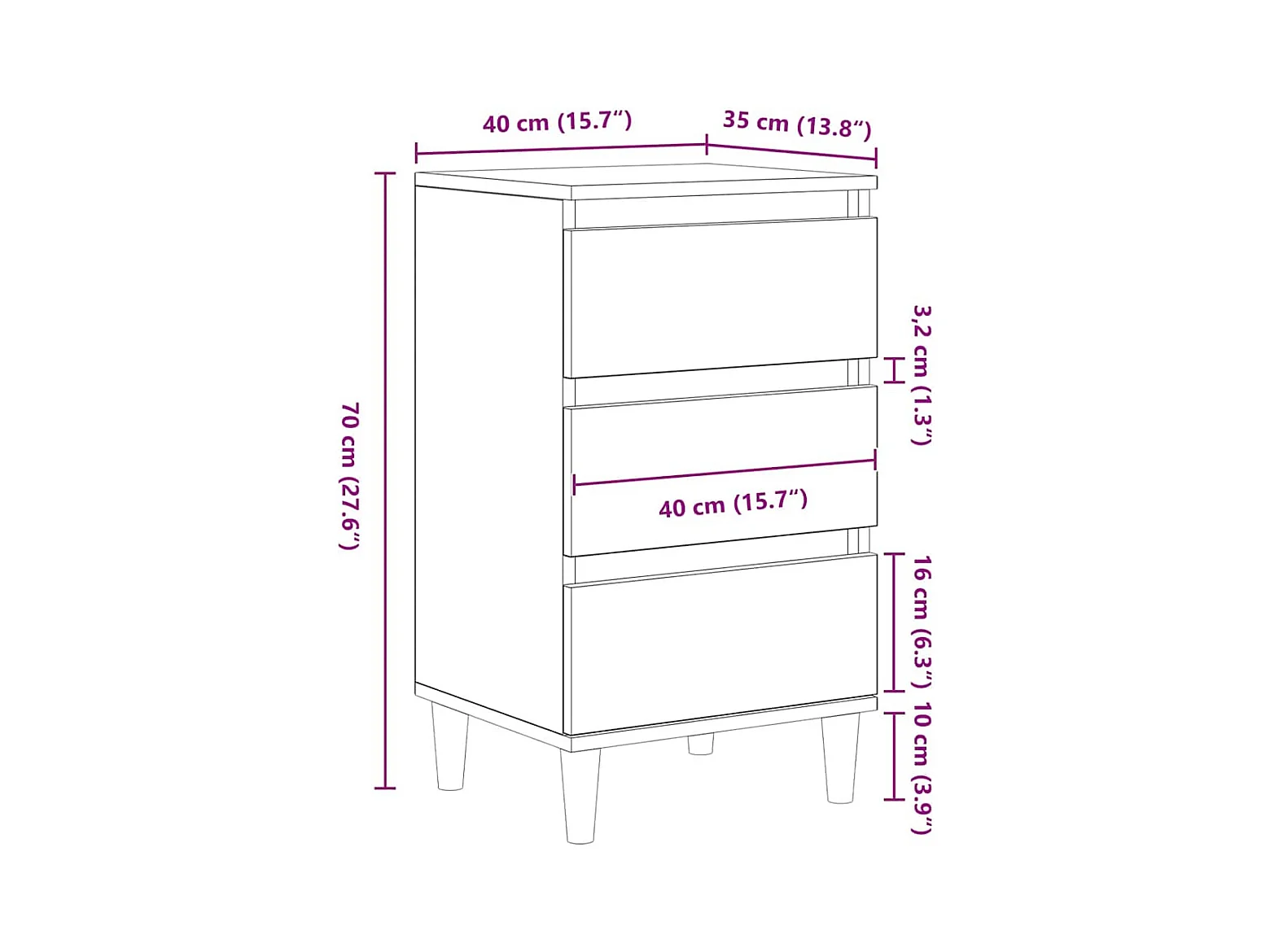 Table de chevet noir 40x35x70 cm bois d’ingénierie