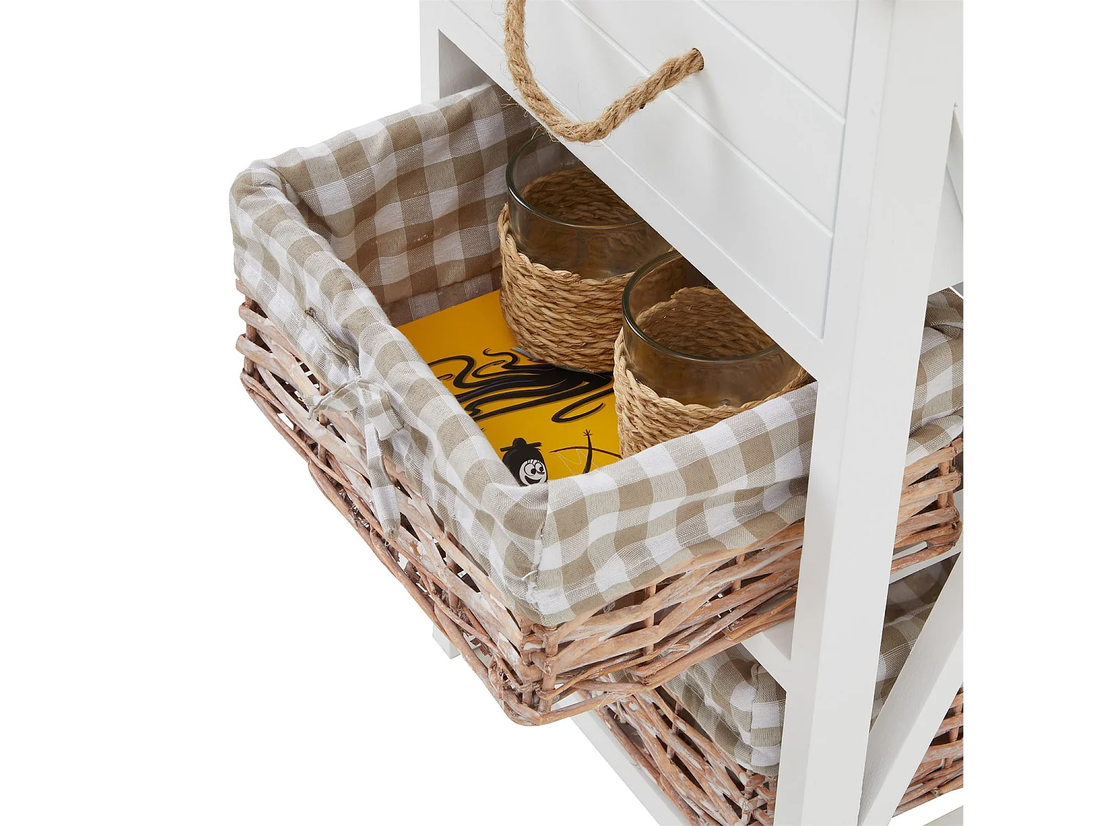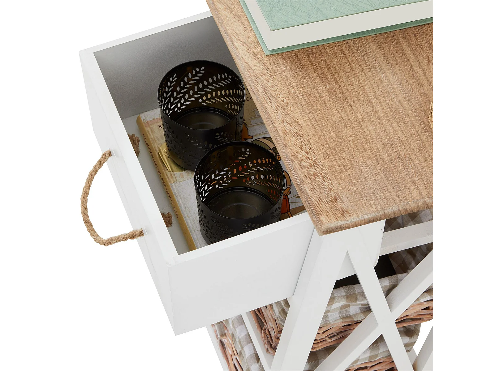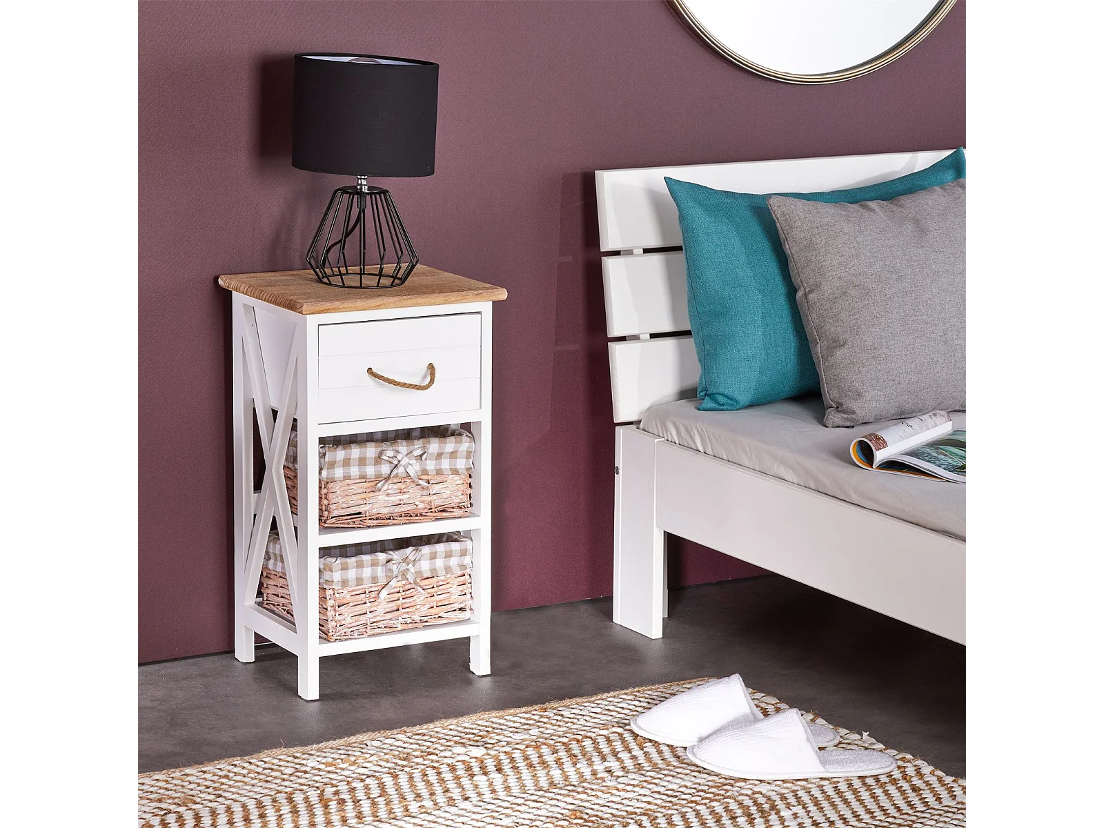 Table de chevet PERUGIA table de nuit 1 tiroir et 2 paniers en bois de paulownia style shabby chic vintage rustique campagnard blanc