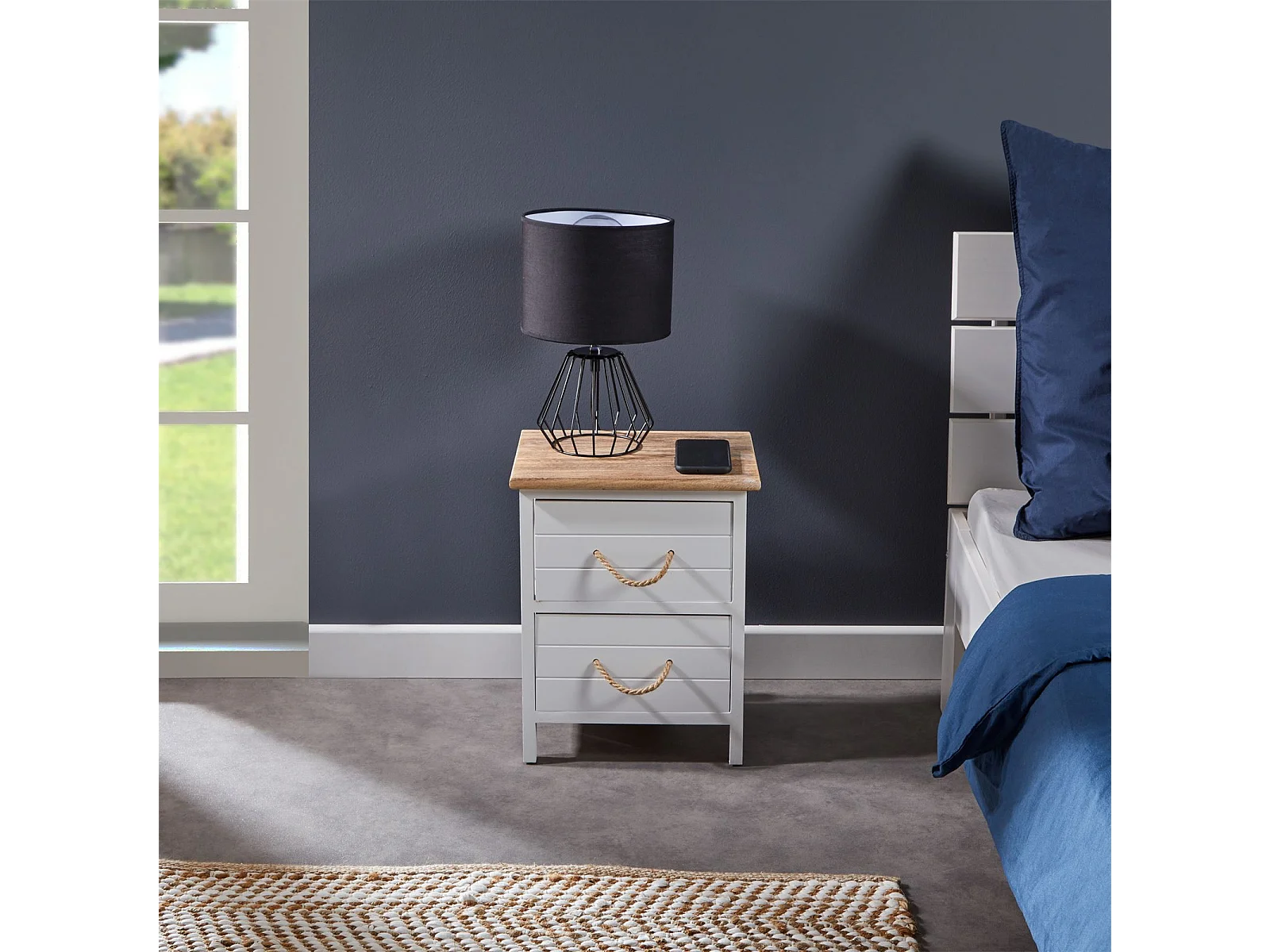 Table de chevet RONDO avec 2 tiroirs, table de nuit en pin massif, chevet en bois lasuré blanc