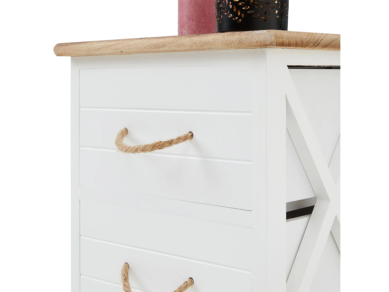 Table de chevet IRMA petite commode de nuit avec 3 tiroirs, en bois paulownia blanc style shabby chic vintage bohême déco en rotin
