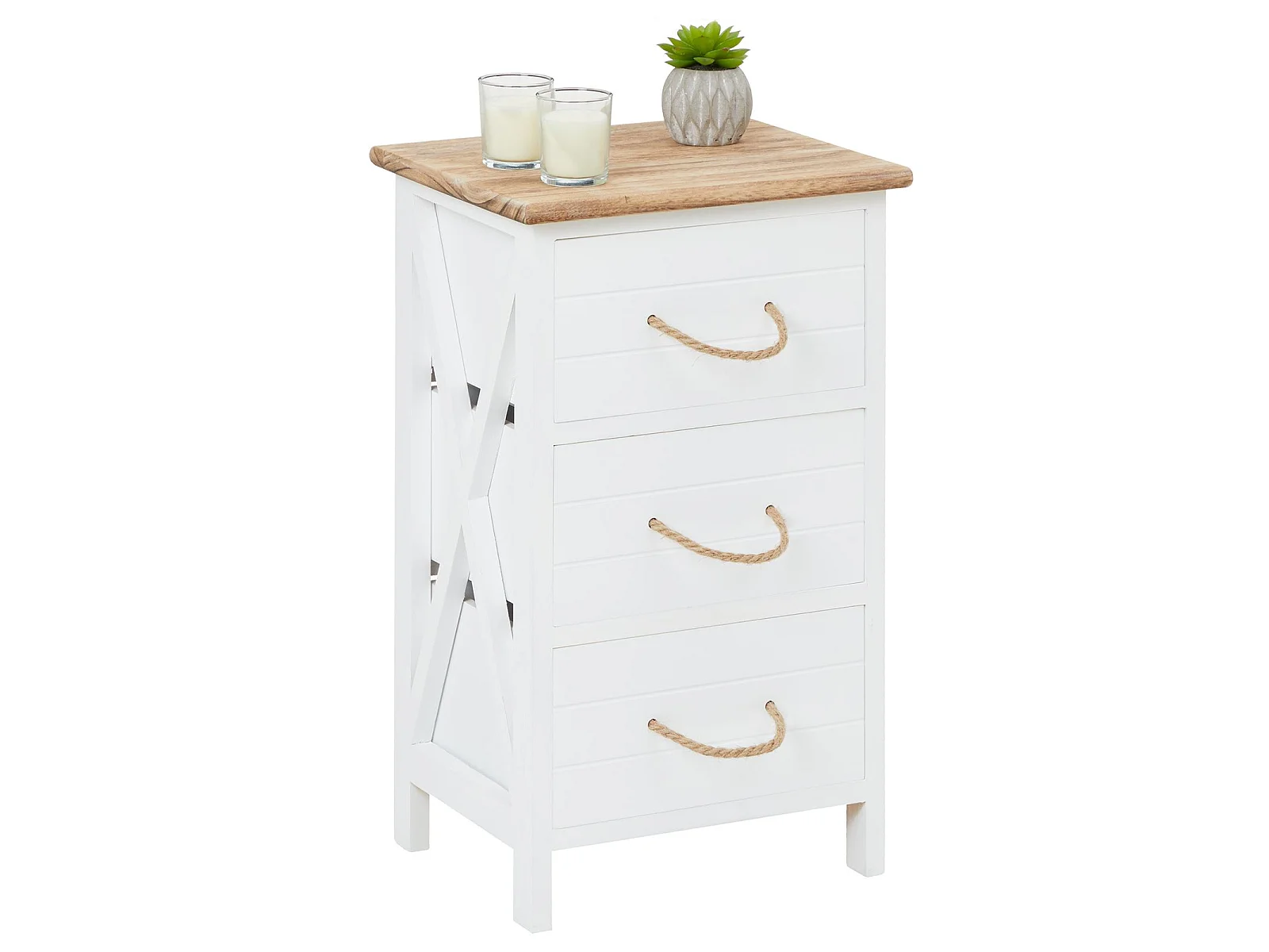 Chiffonnier PADUA table de nuit avec 3 tiroirs, en bois de paulownia blanc style shabby chic vintage rustique campagne