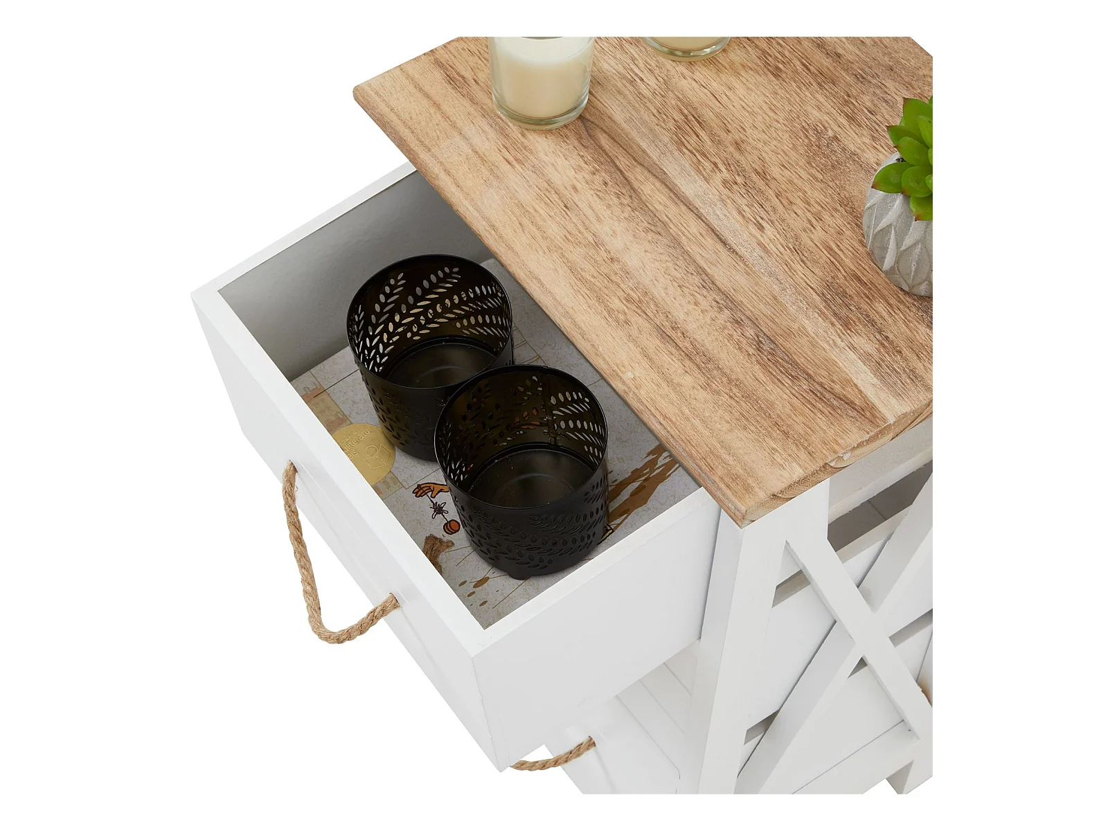 Table de chevet PERUGIA table de nuit 1 tiroir et 2 paniers en bois de paulownia style shabby chic vintage rustique campagnard blanc