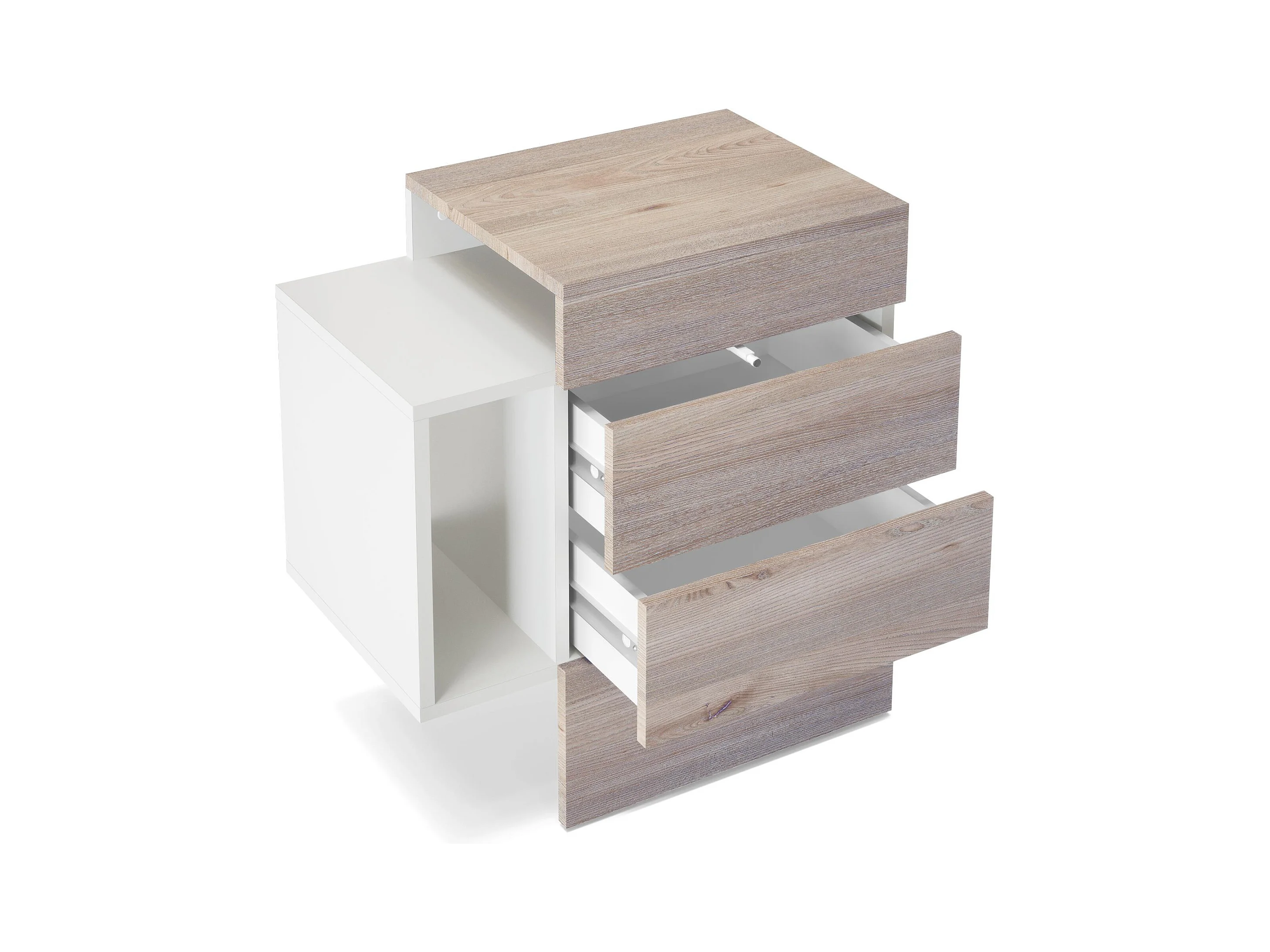 Table de chevet Queens, Table de nuit avec 2 tiroirs et 1 compartiment latéral à fixer au mur, Blanc mat/Bordeaux brillant, incl. encastré LED (60x63x36 cm)