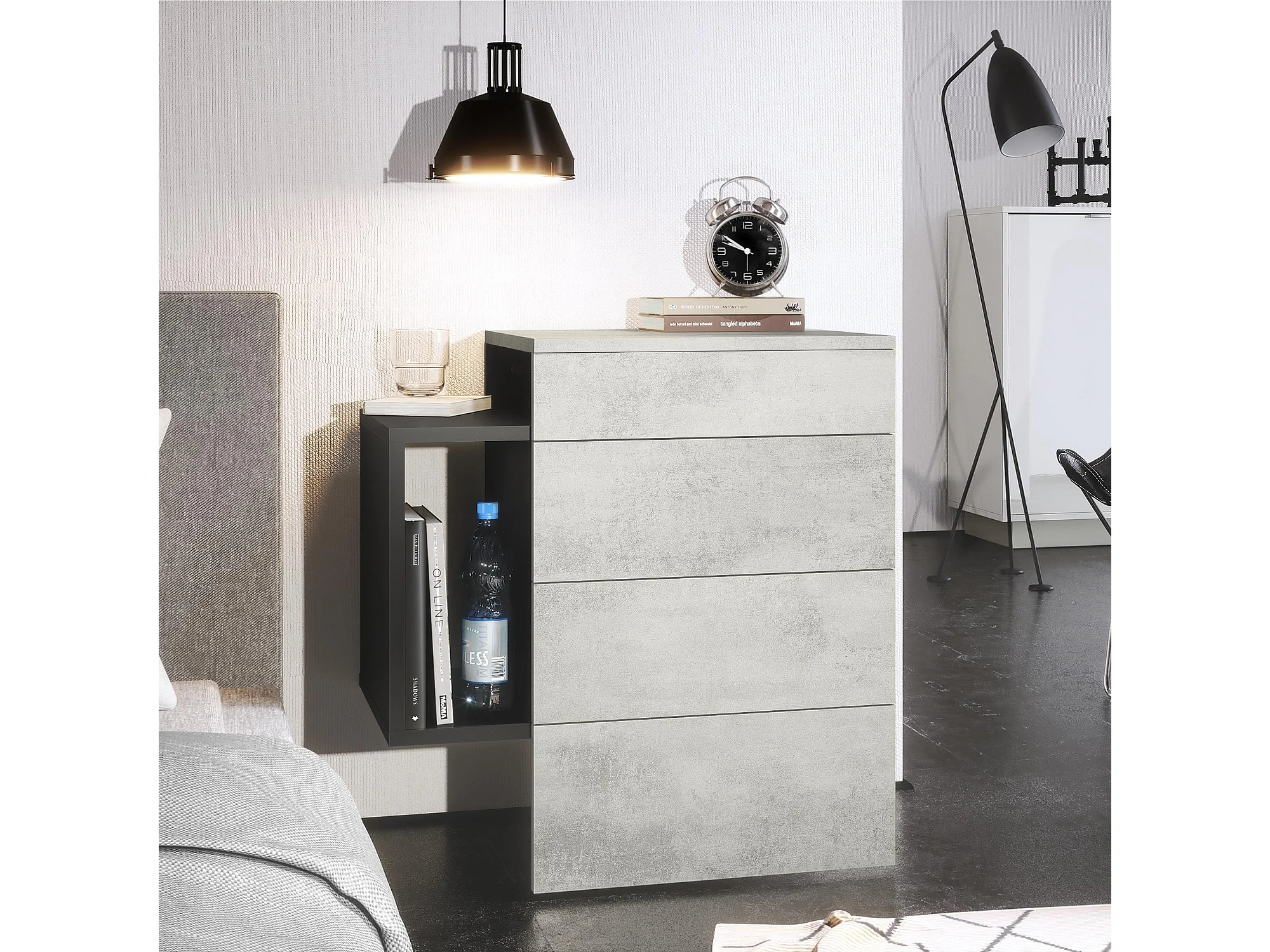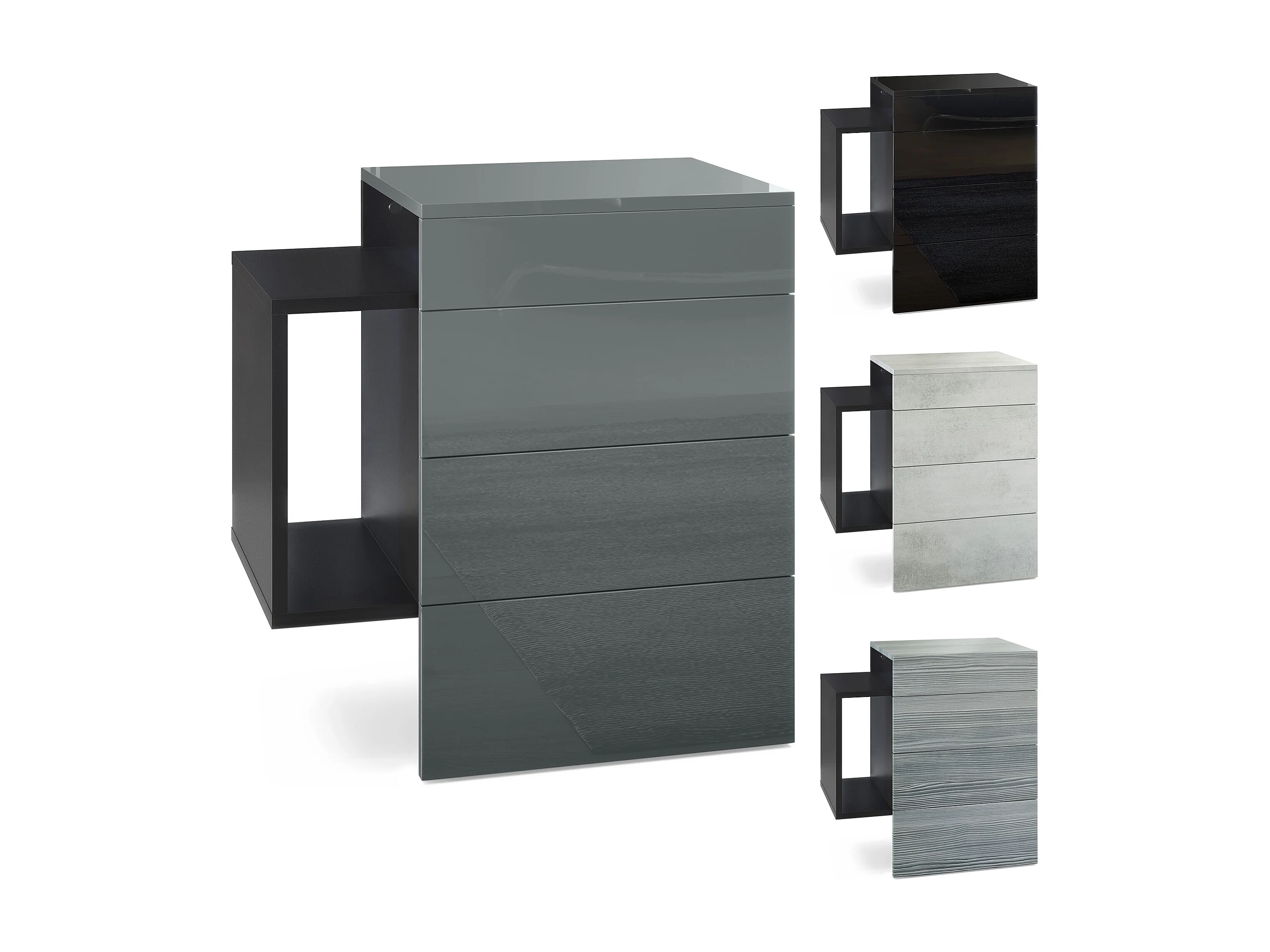Table de chevet Queens, Table de nuit avec 2 tiroirs et 1 compartiment latéral à fixer au mur, Noir mat/Aspect Béton Oxyde (60 x 63 x 36 cm)