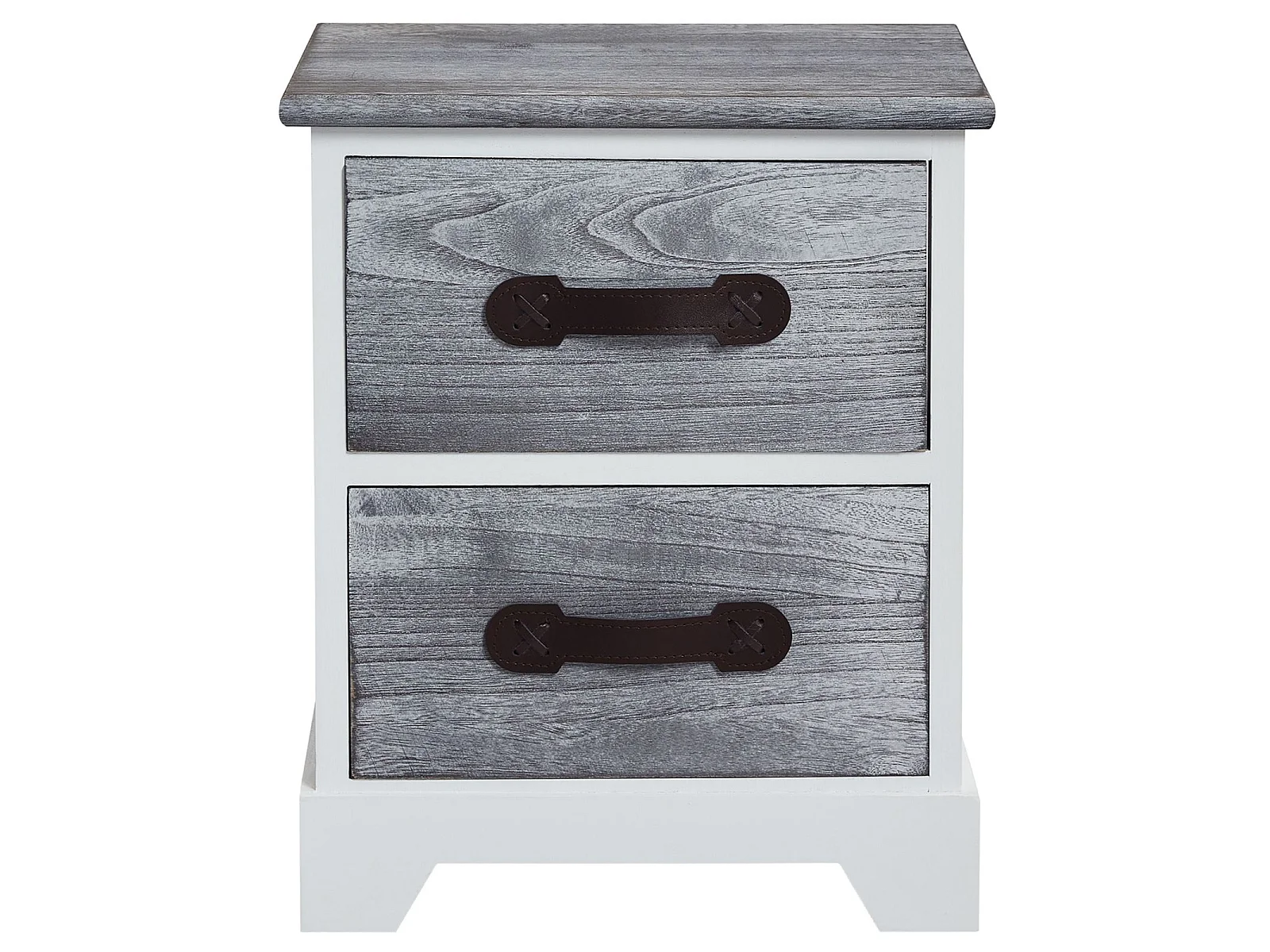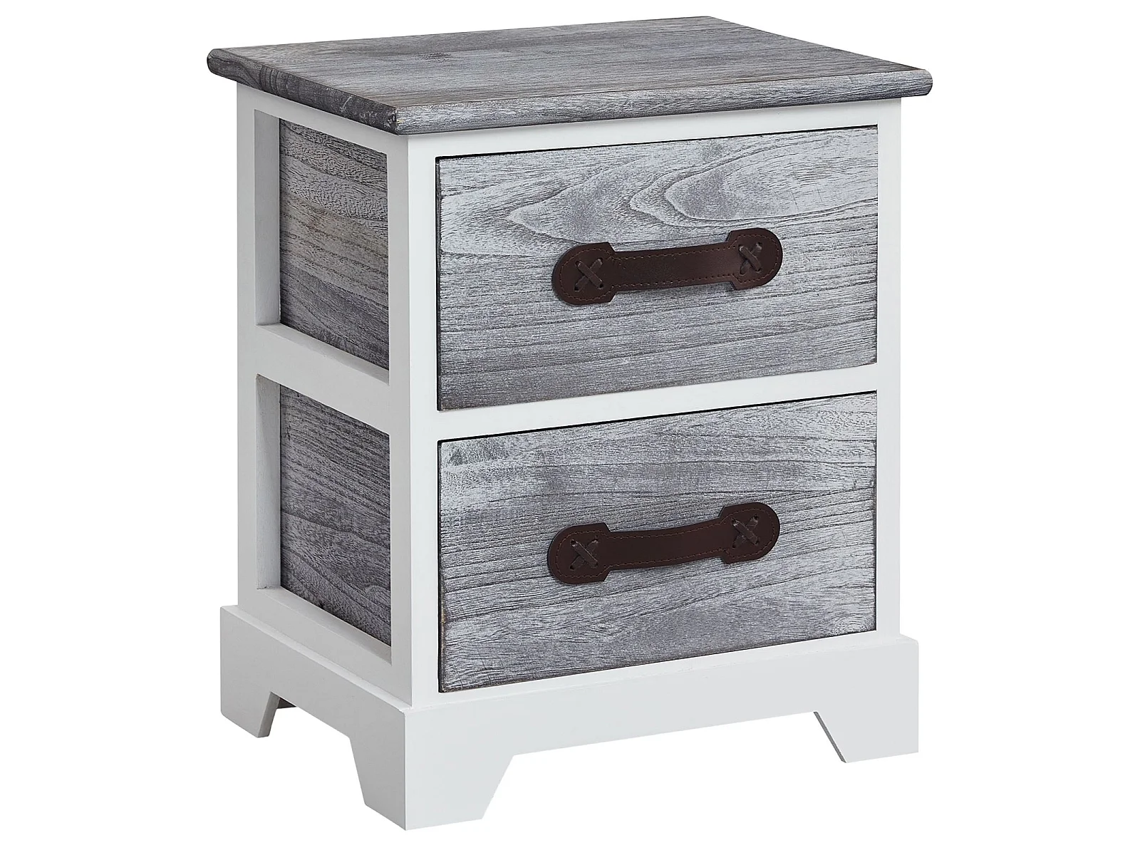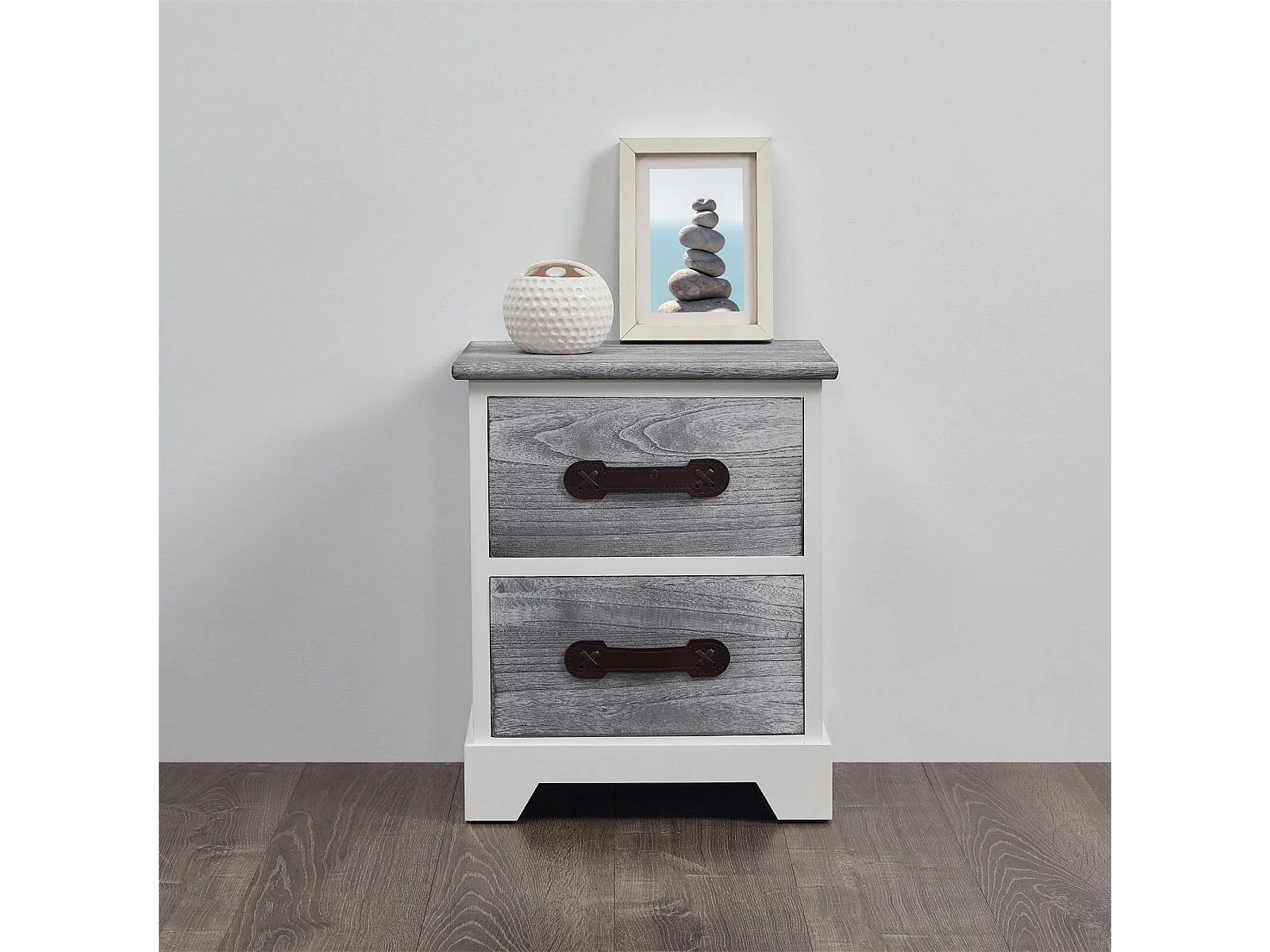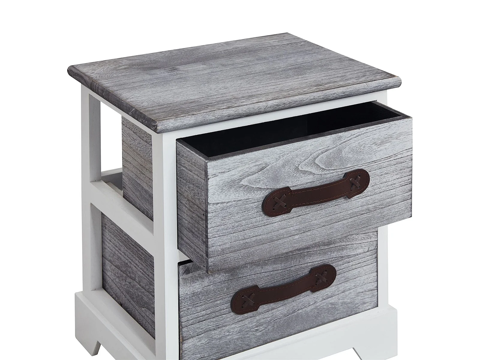 Table de chevet SALERNO table de nuit 2 tiroirs en bois de paulownia style shabby chic vintage vieilli gris blanc