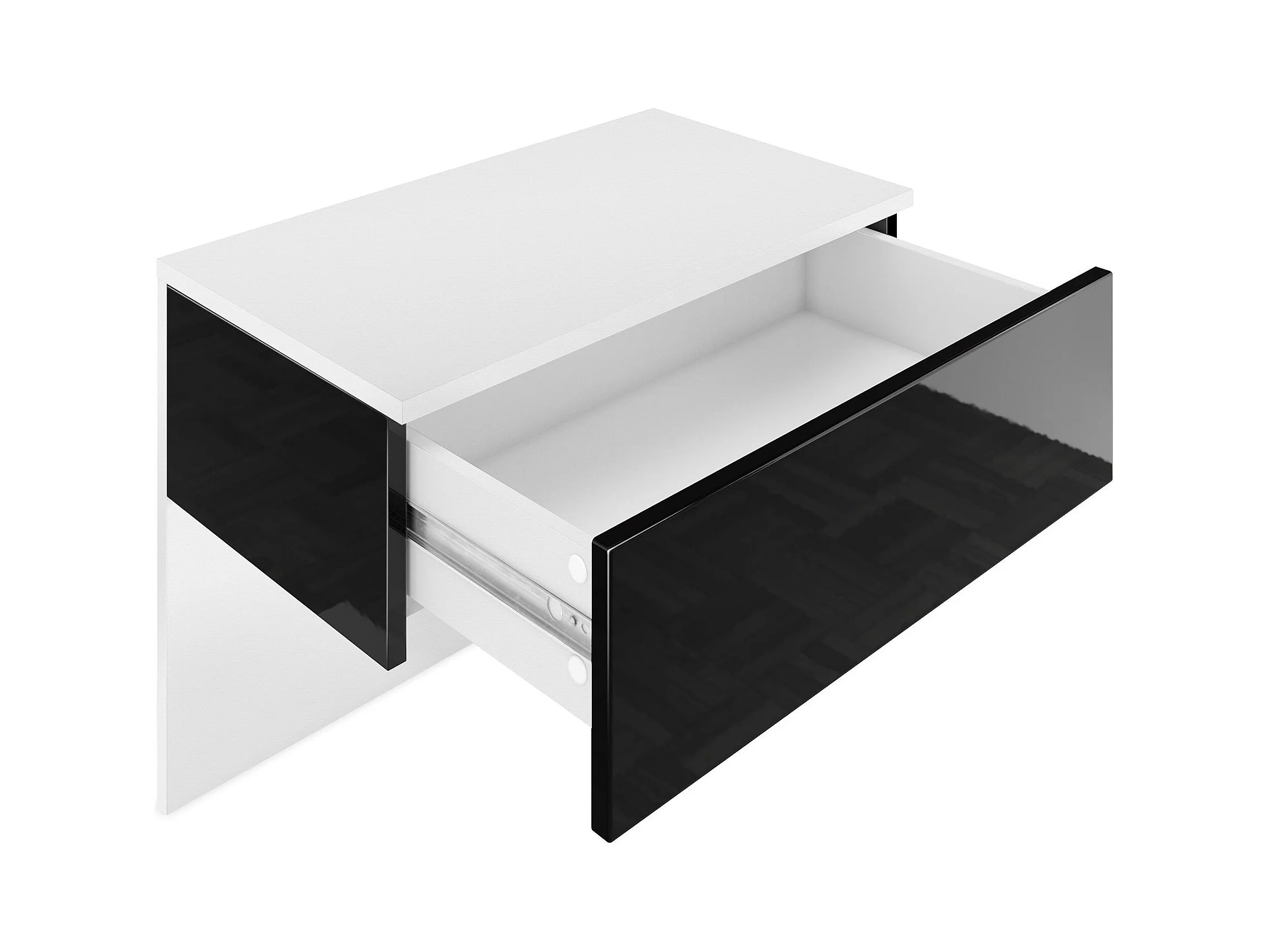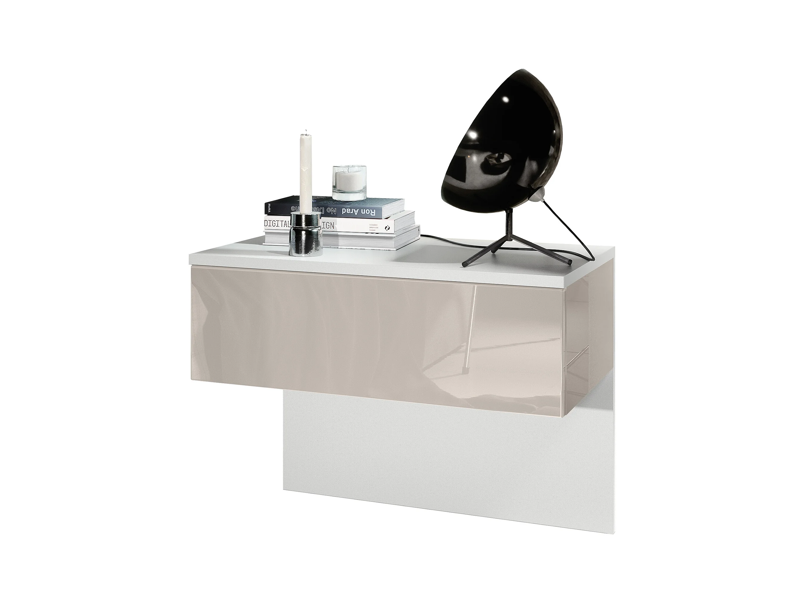 Table de chevet Sleep, Table de nuit à fixation murale avec tiroir, Blanc mat/Gris sable haute brillance (60 x 46 x 35 cm)
