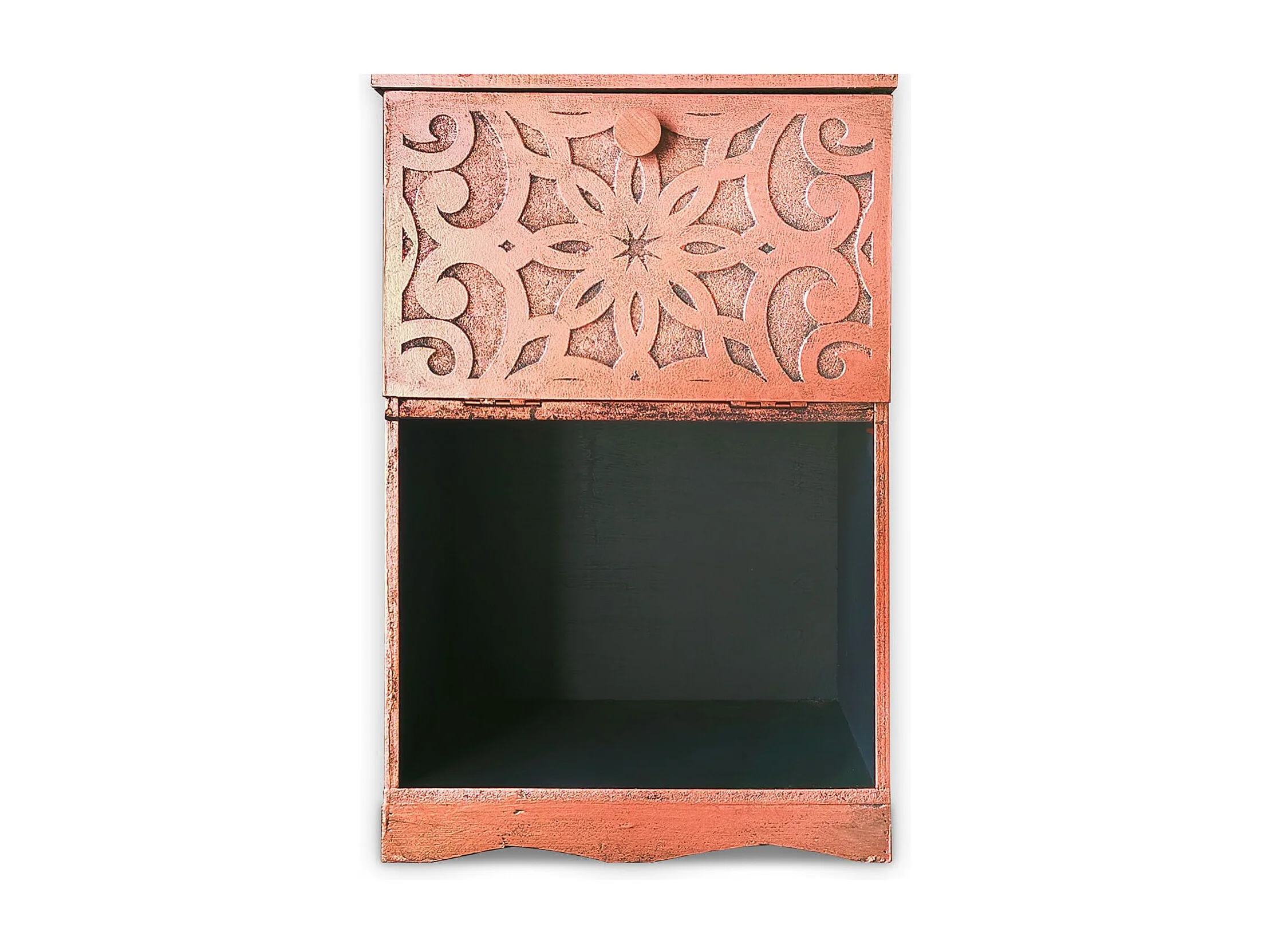 Table de chevet style oriental bois sculpté 1 porte Monbolyto Bois Cuivre