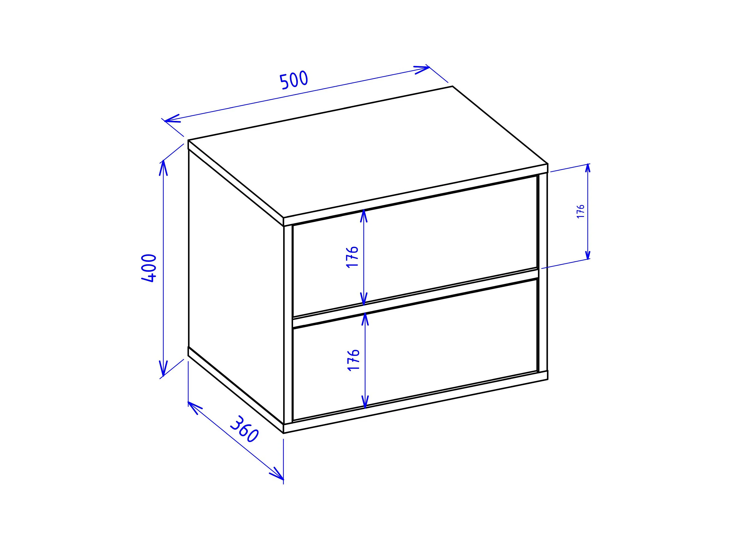 Table de chevet suspendue – avec 2 tiroirs – blanc – 50 cm – FRAMME