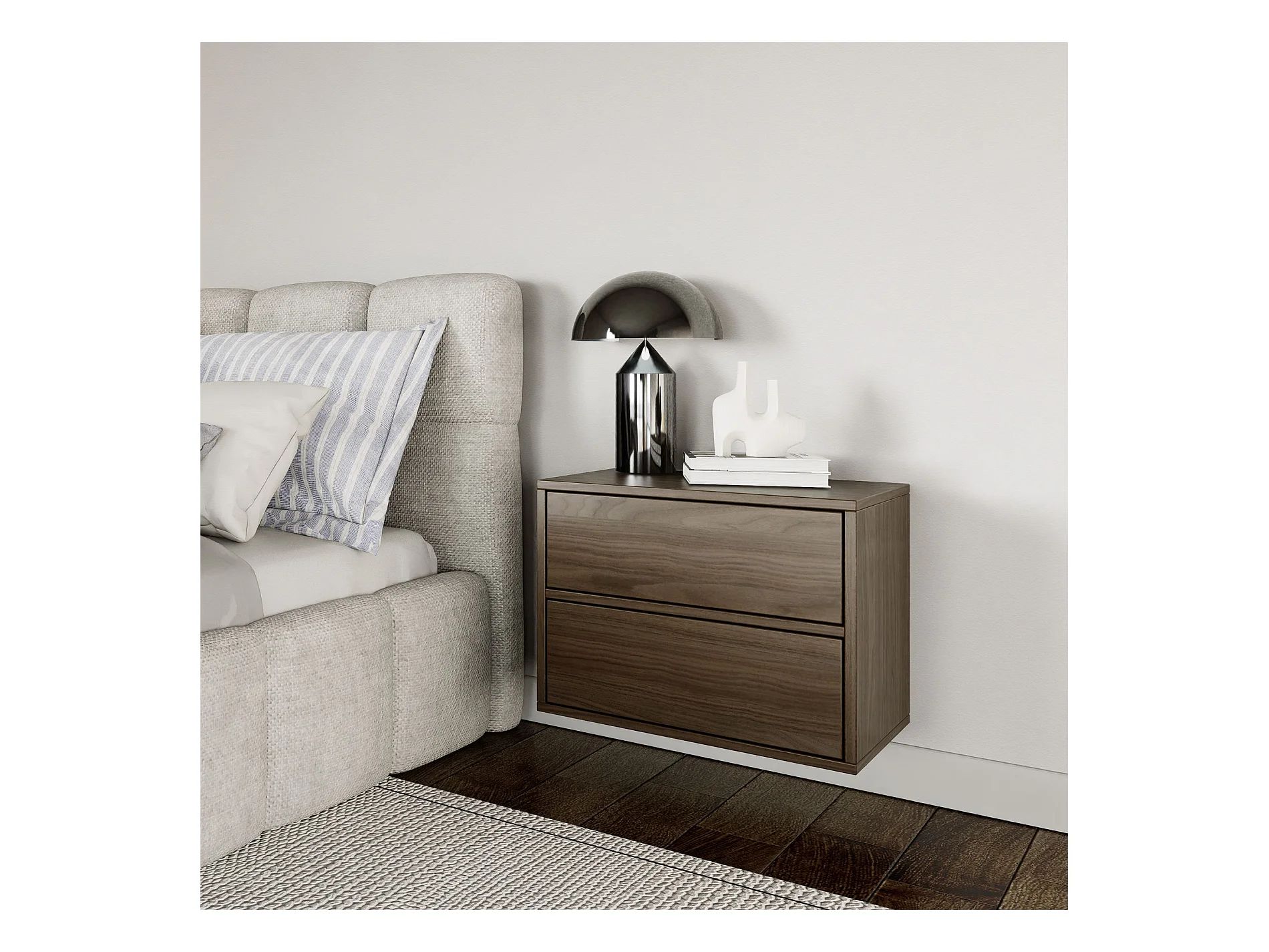 Table de chevet suspendue – avec 2 tiroirs – effet bois noyer – 50 cm – FRAMME