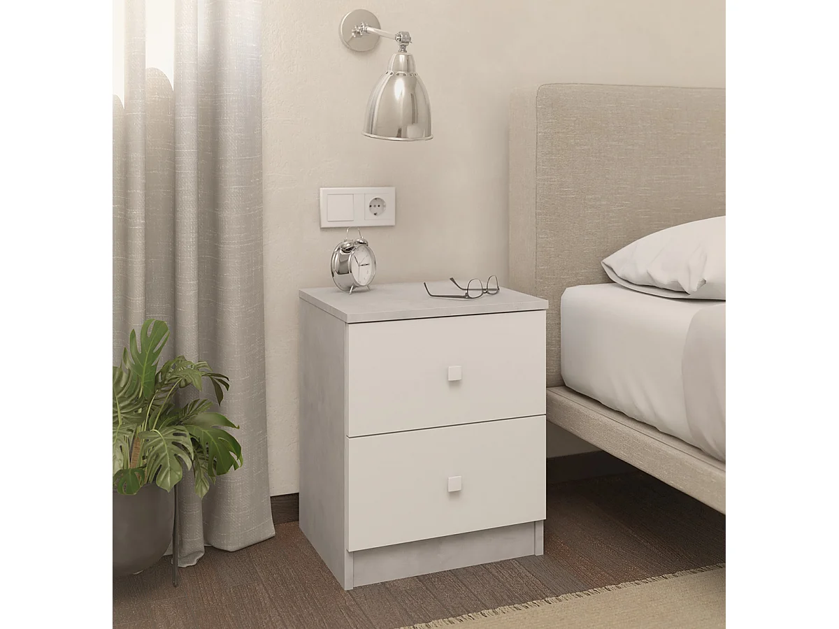 Table de chevet, table de nuit avec 2 tiroirs coloris ciment, blanc - Hauteur 50 x Longueur 40 x profondeur 35 cm