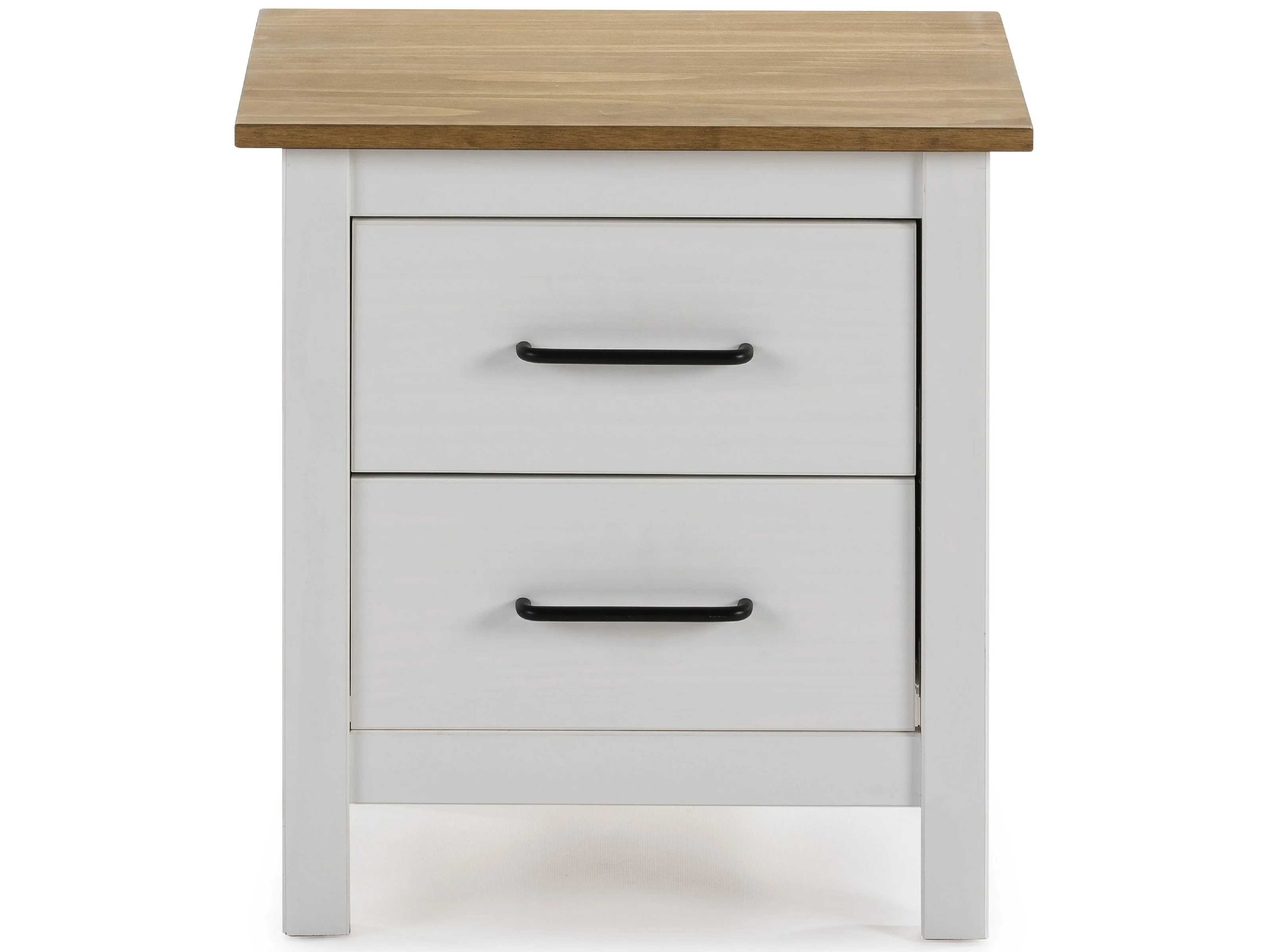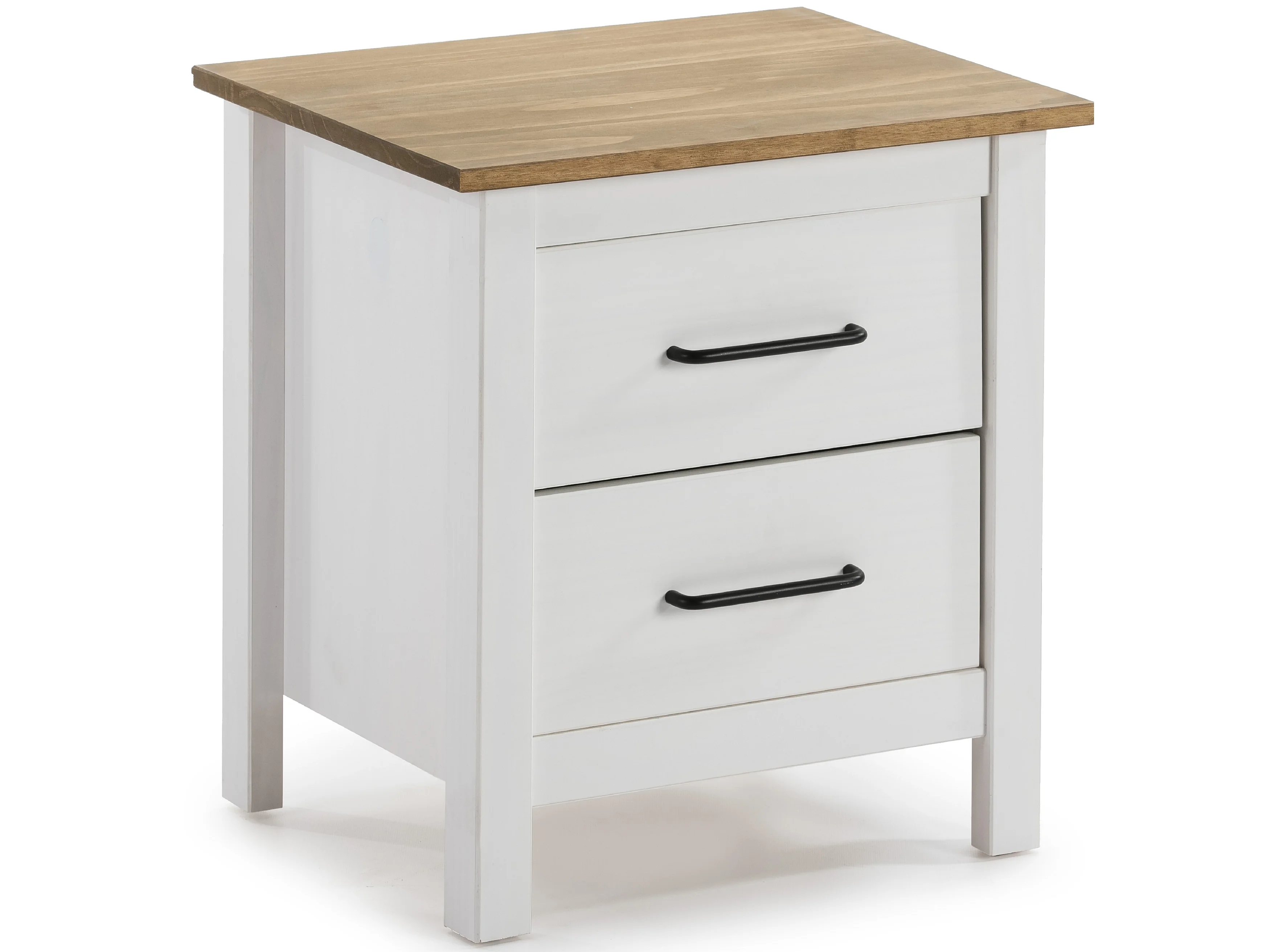 Table de chevet, table de nuit en pin massif décor ciré blanc et chêne - Longueur 46 x Profondeur 35 x Hauteur 49.5 cm