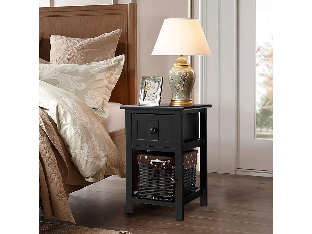 Table de Chevet Table de Nuit Meuble de Chevet avec 1 Tiroir + 1 Panier pour Chambre, Salon,Balcon 28 x 31 x 45 cm Noir