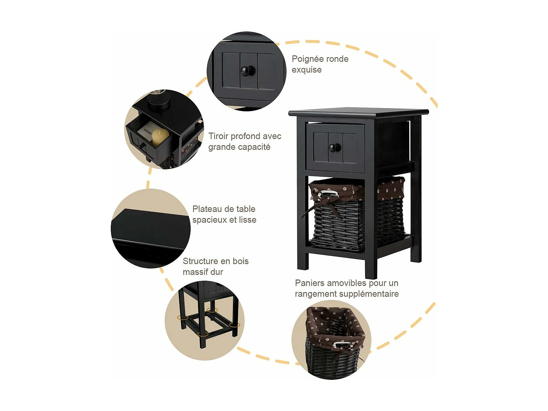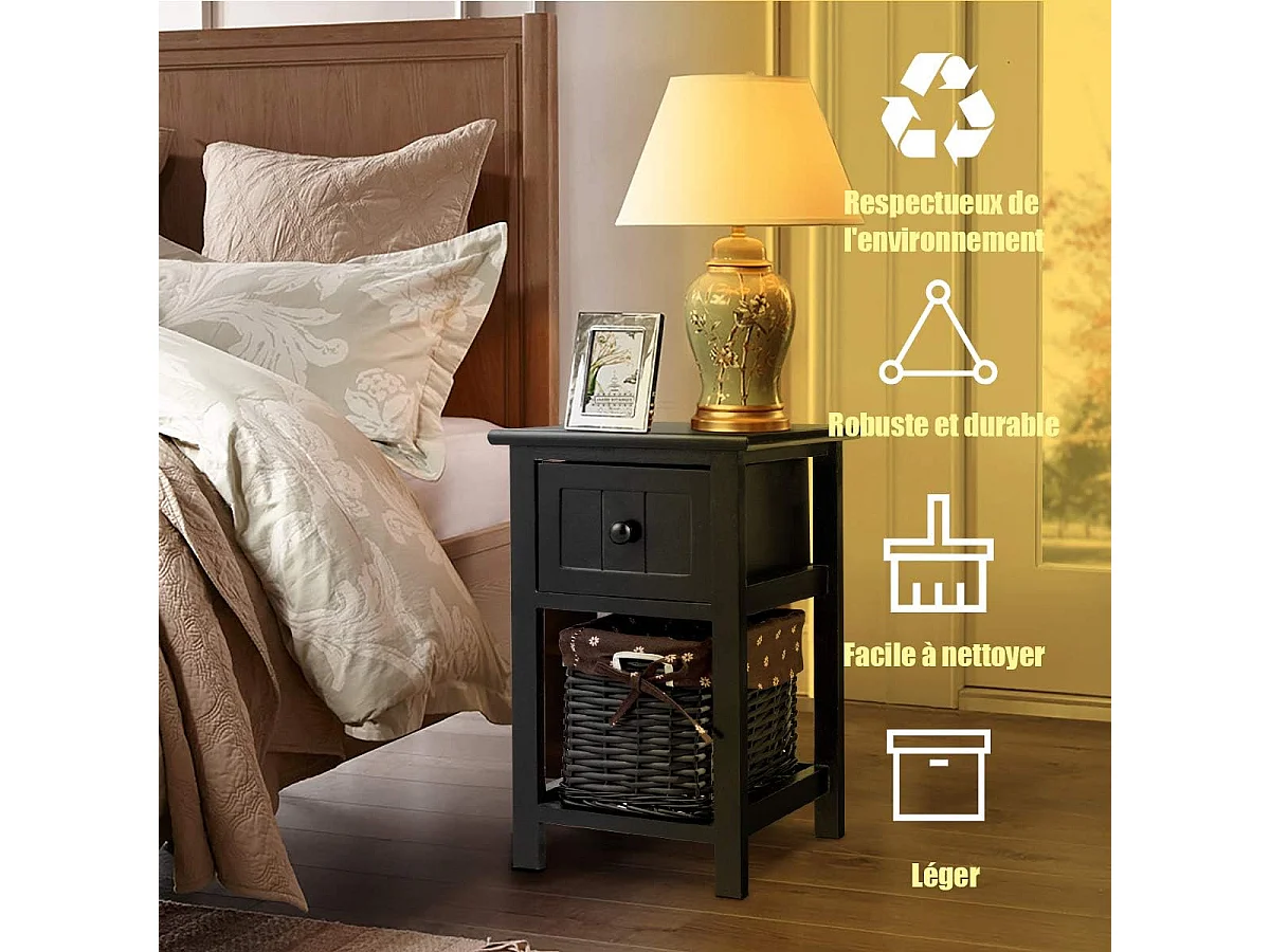 Lot de 2 Tables de chevet noir 40x42x45 cm bois d’ingénierie WVGQ2673