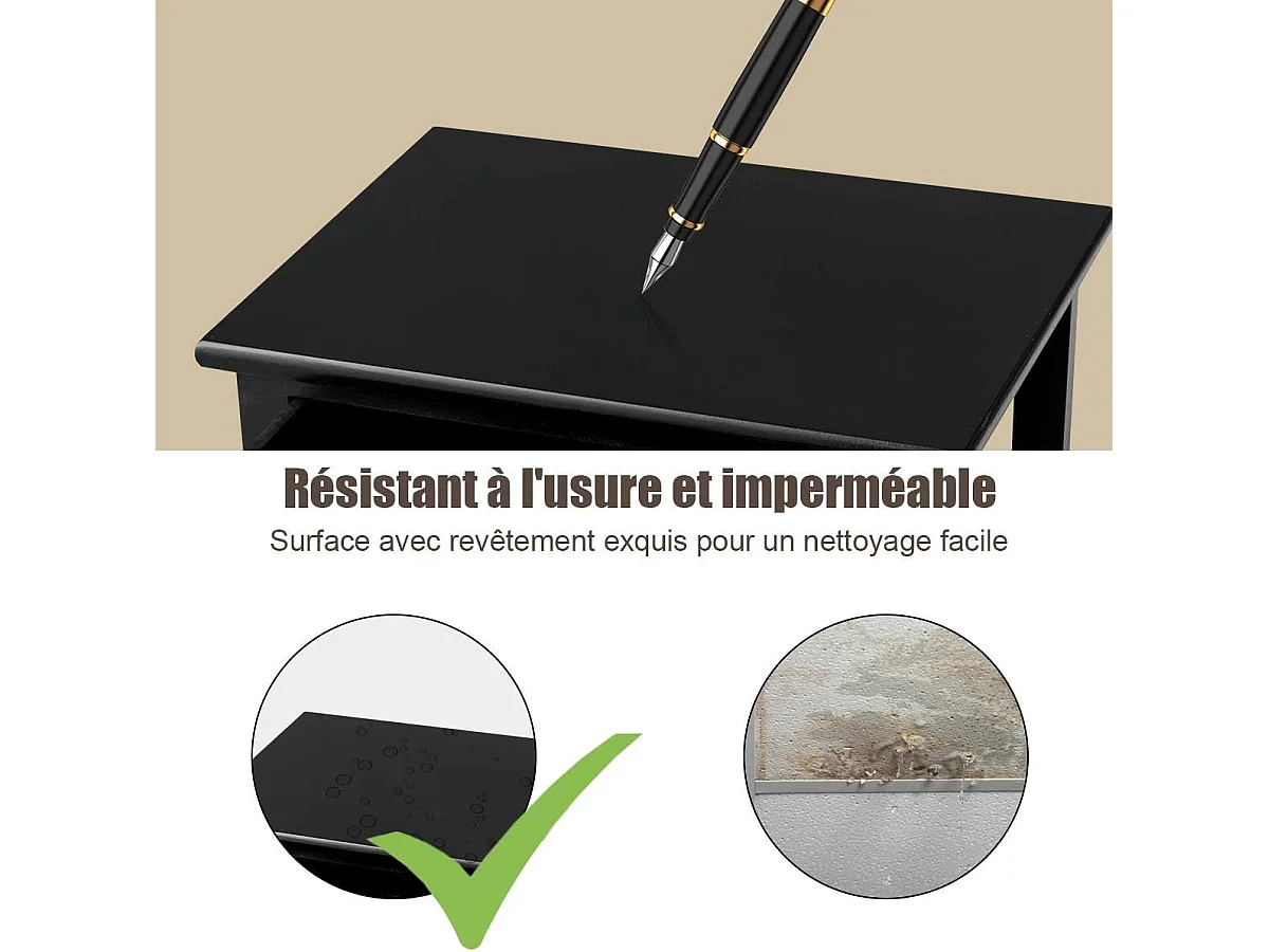 Table de chevet noir 40x31x50 cm bois d'ingénierie et métal