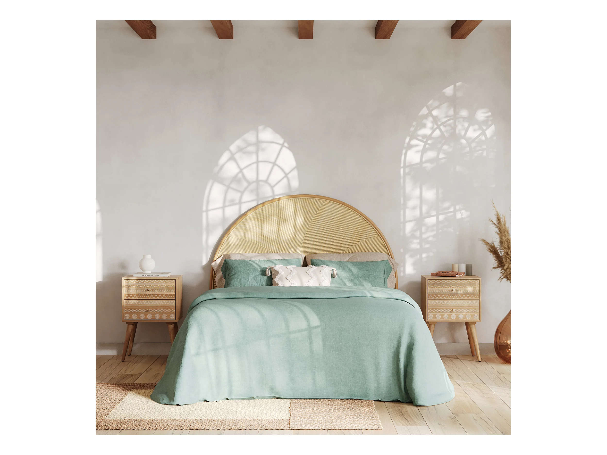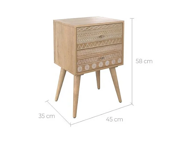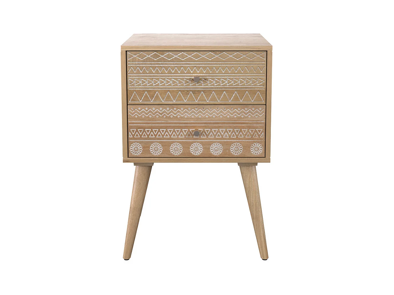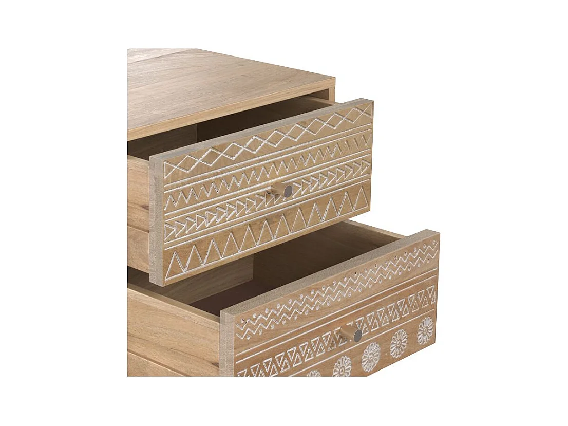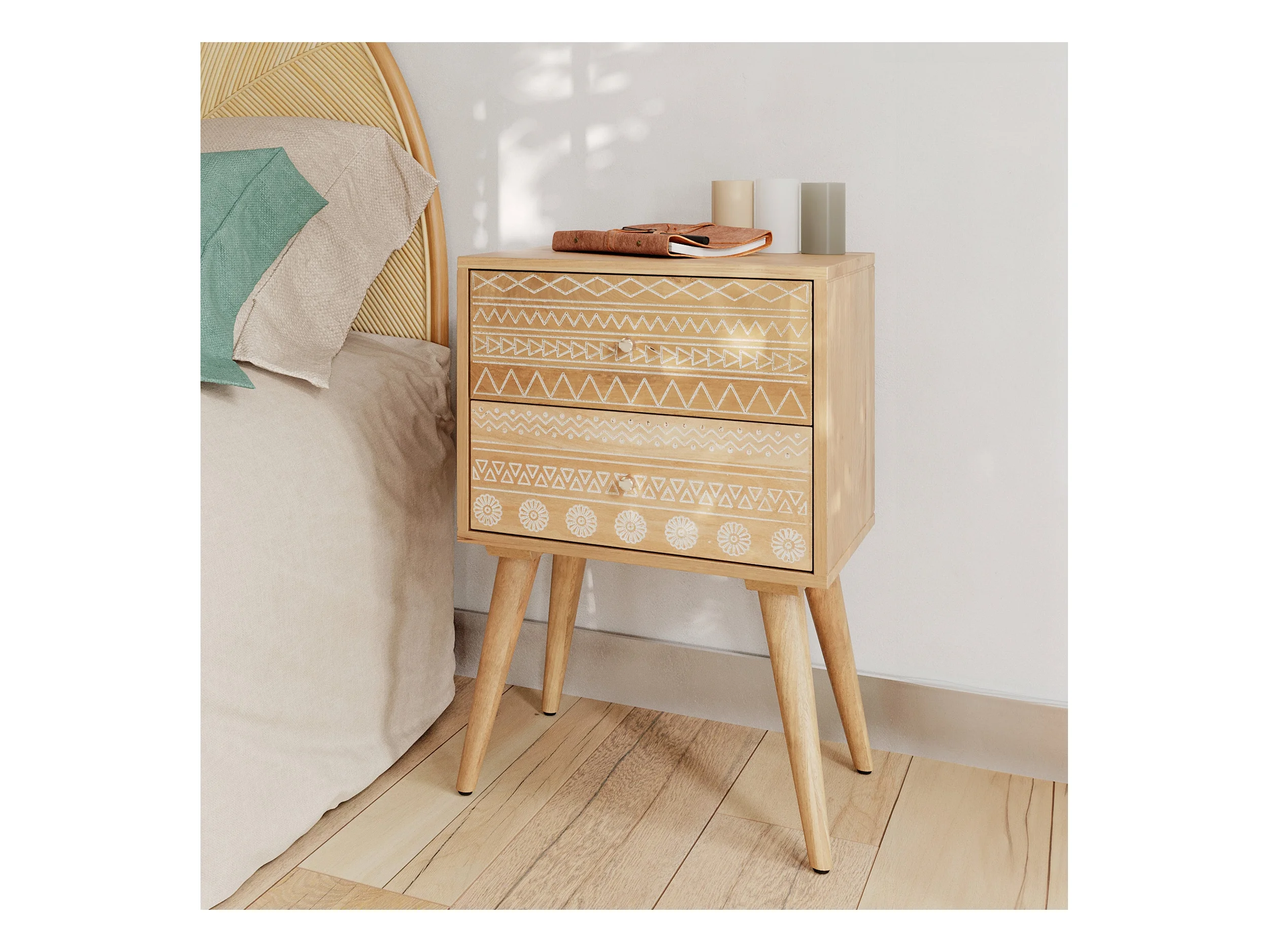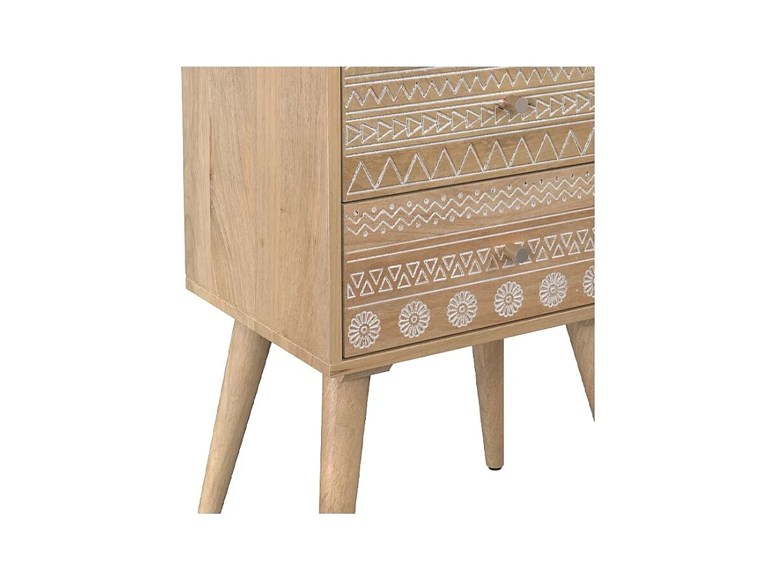 Table de chevet en bois de manguier gravé 2 tiroirs - Tiny