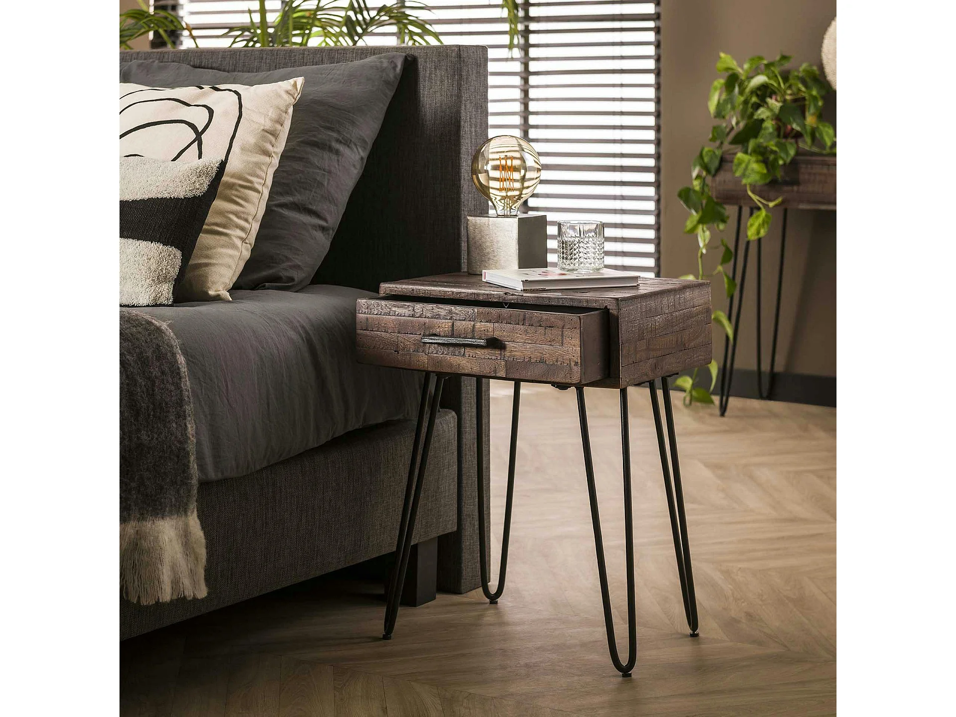 Table de chevet vintage en bois grisé 1 tiroir MELBOURNE