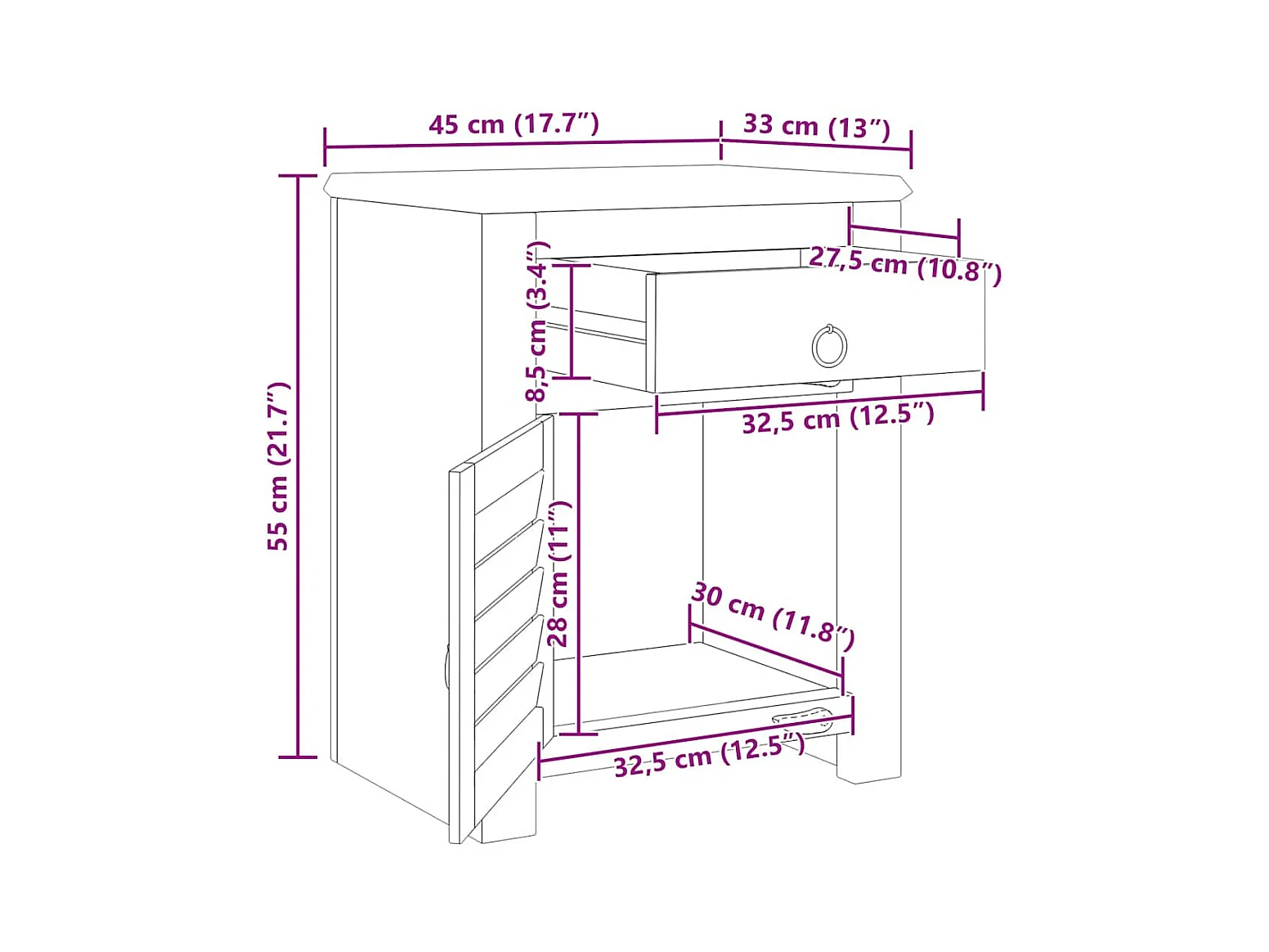 Table de chevet 45x35x60 cm Bois de manguier massif