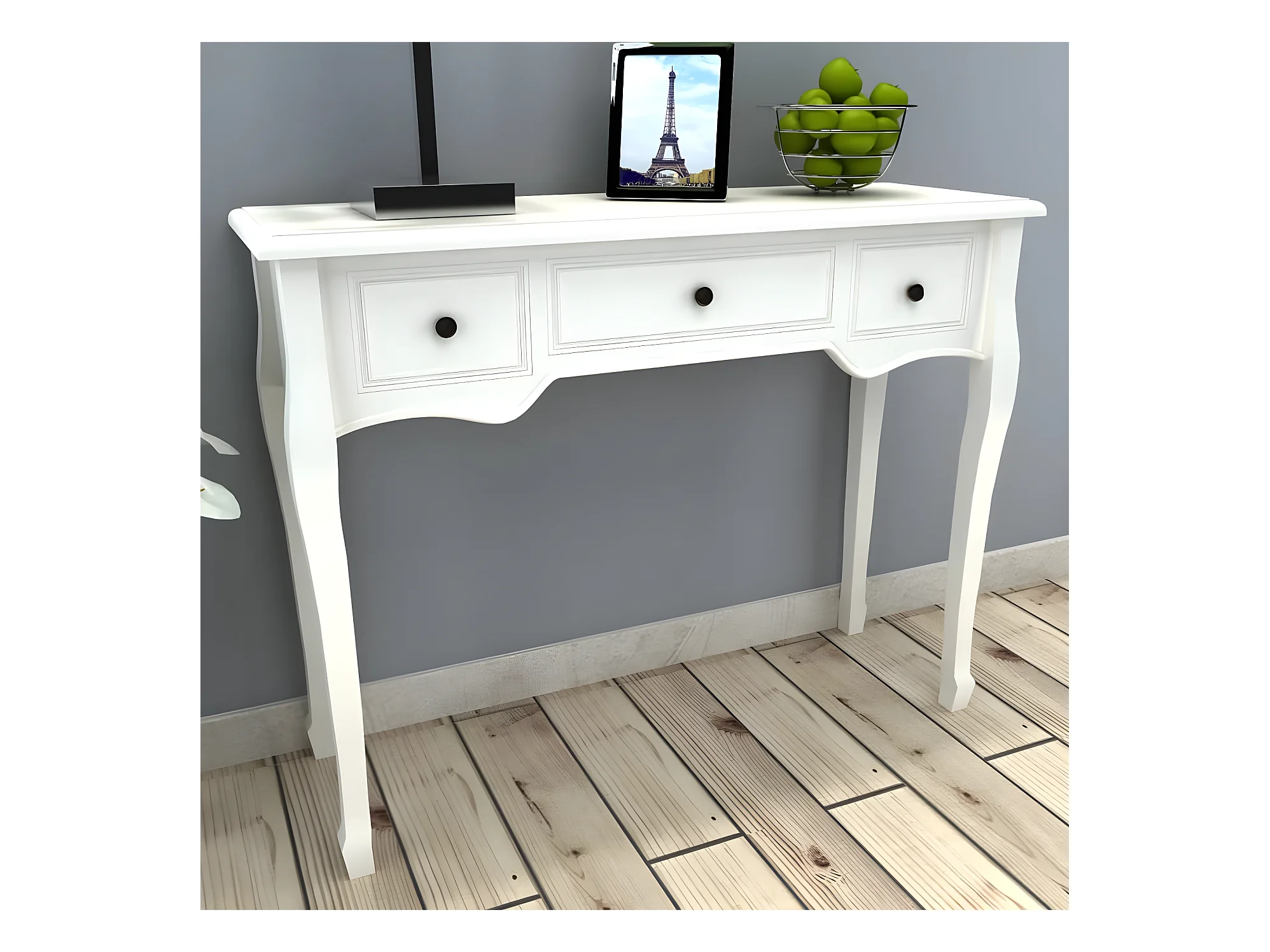 Table de console et coiffeuse avec 3 tiroirs Blanc GHR20877