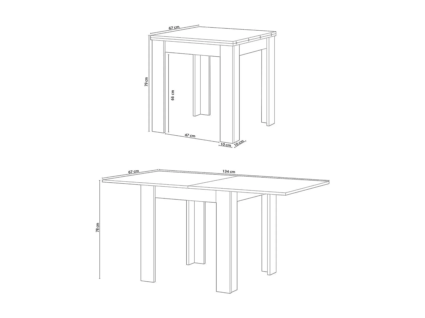 Table de cuisine extensible couleur chêne canadien / blanc artic - Longueur 67/134cm x Hauteur 79 x Profondeur 67 cm