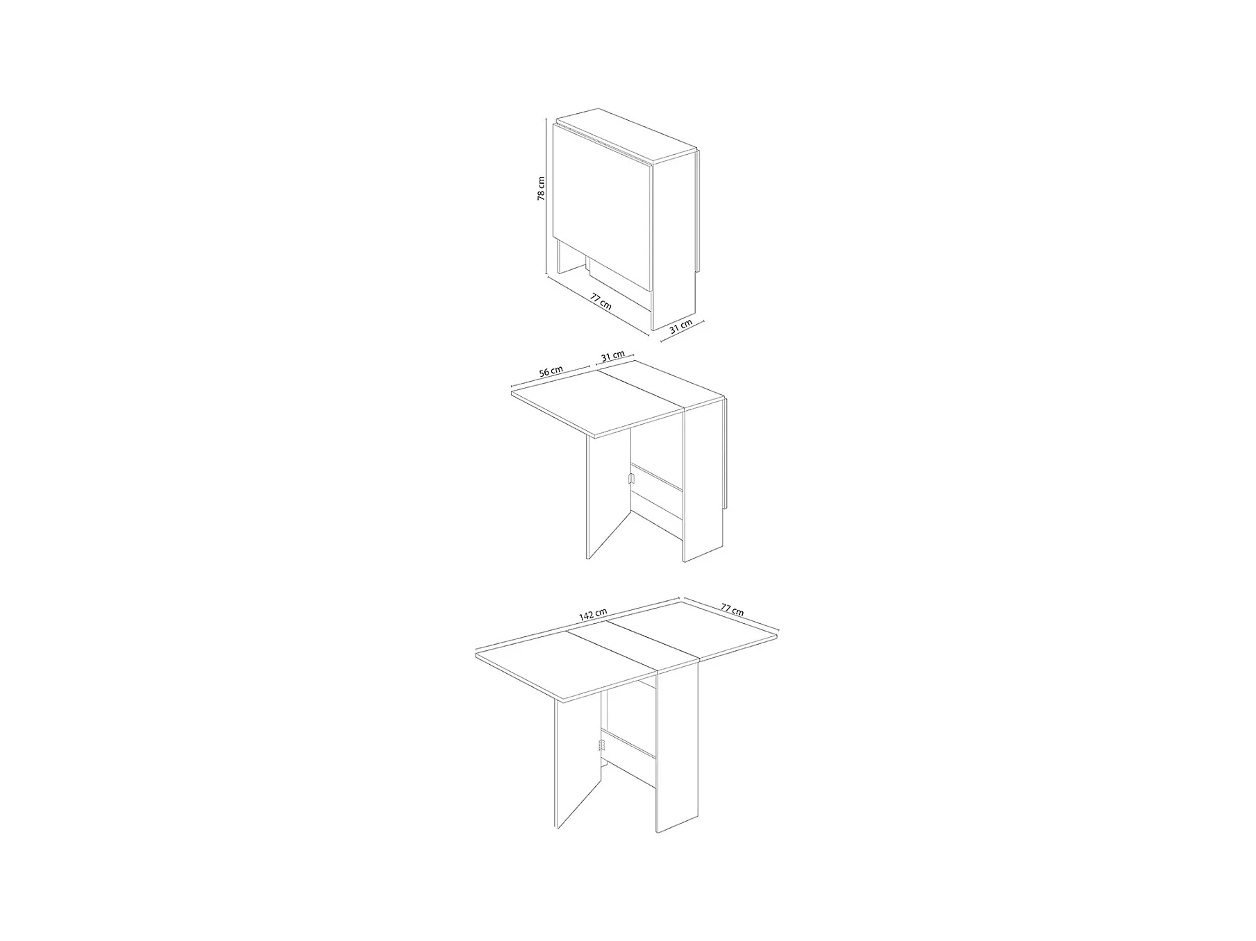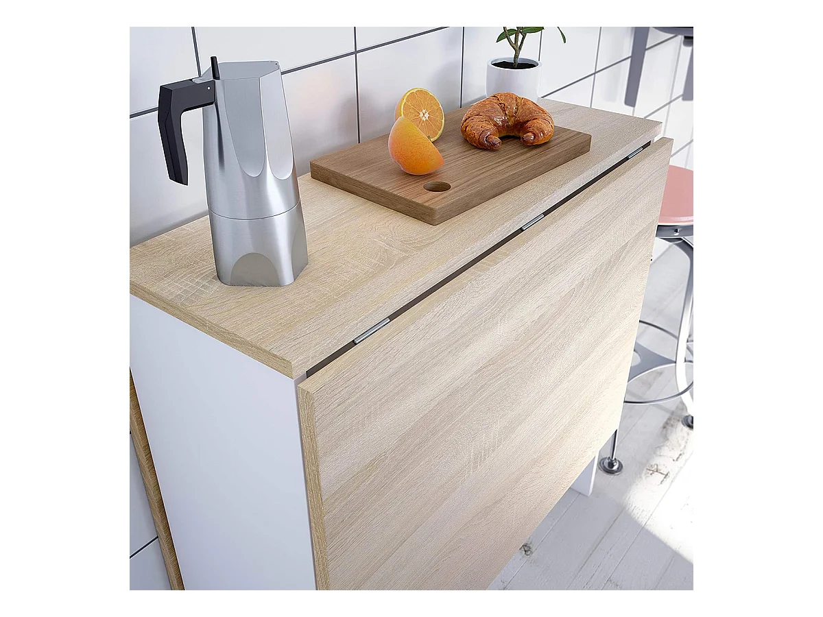 Table de cuisine pliante couleur chêne canadien / blanc artic - Longueur 77 x Hauteur 78 x Profondeur 31 cm