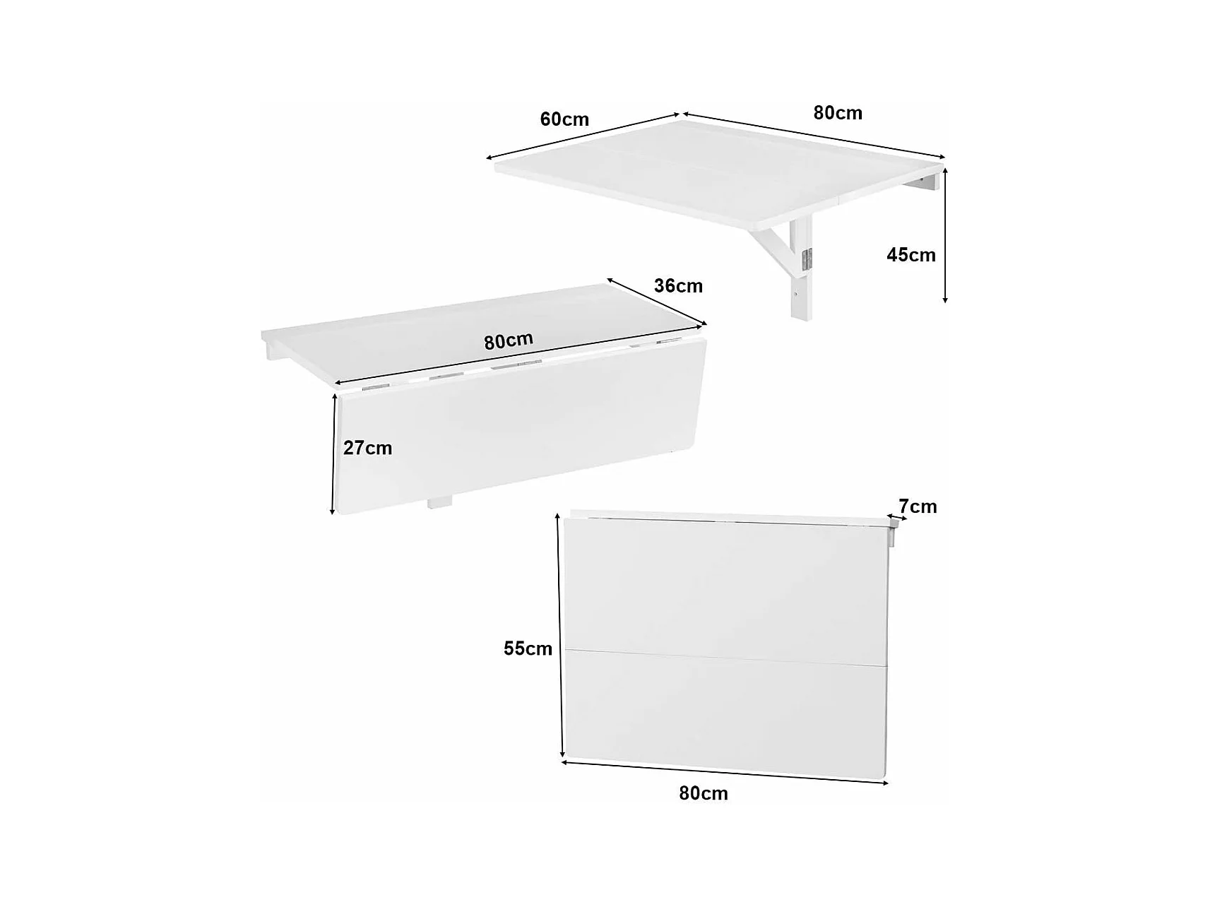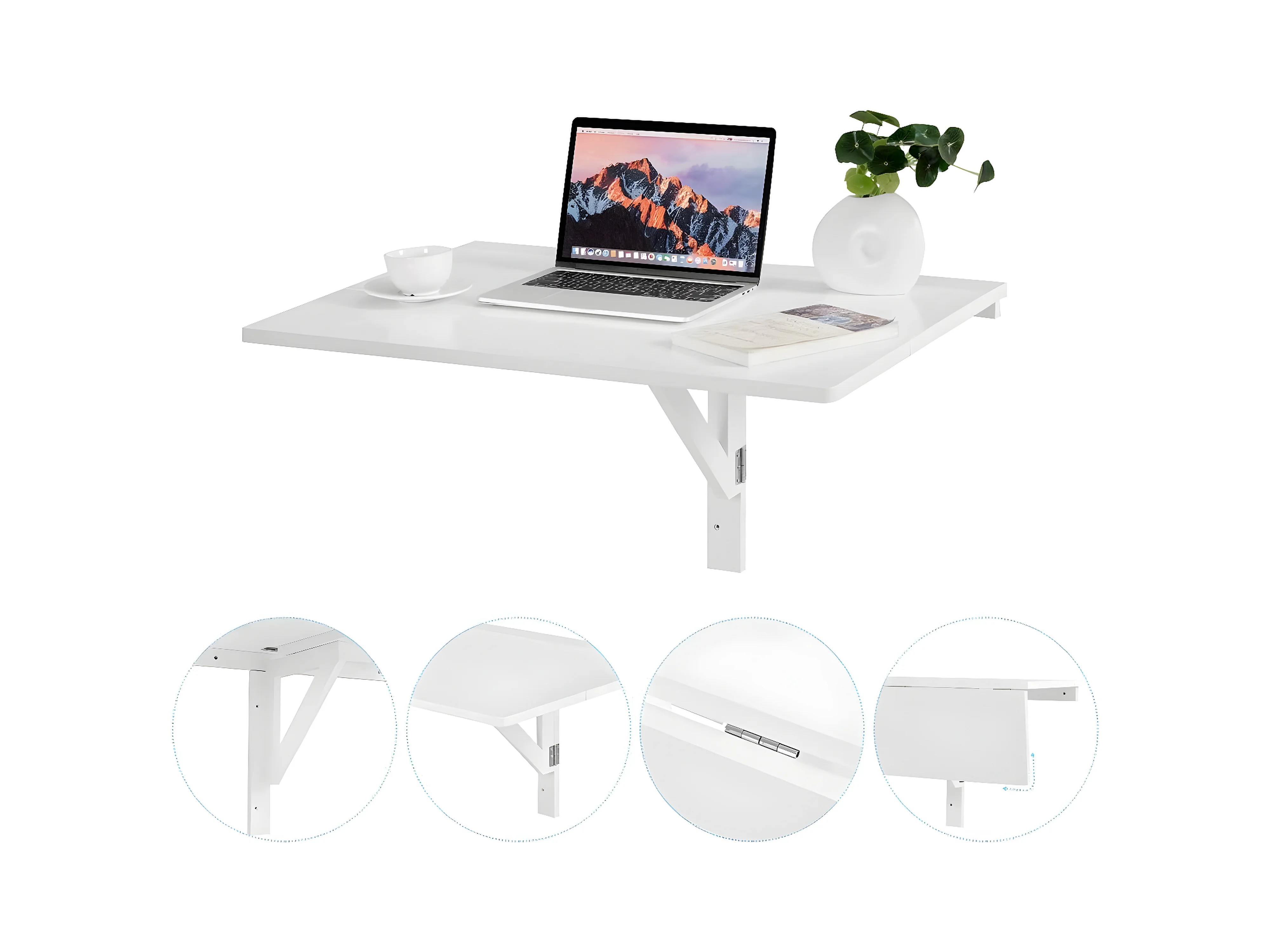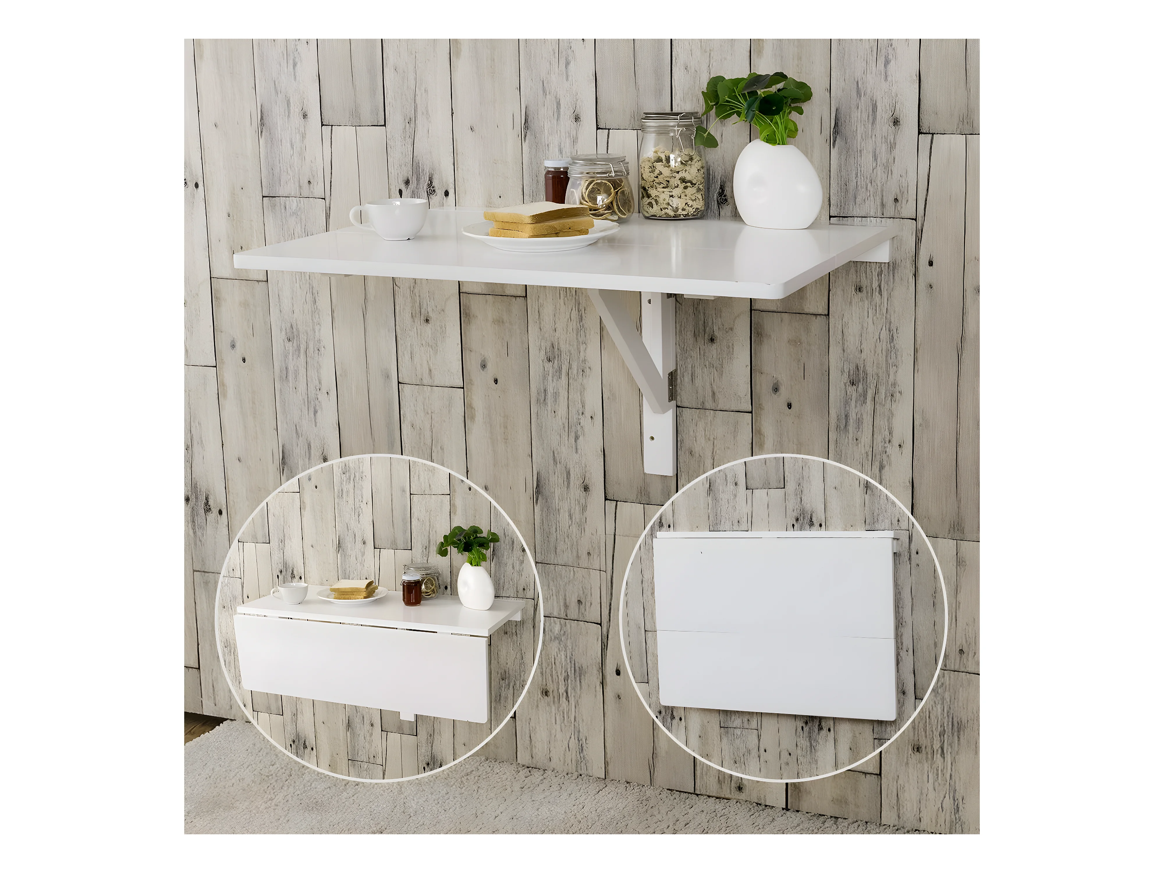 Table de Cuisine Pliante Rabattable Bureau Murale Mural Meuble de Cuisine en Bois pour Salle à Manger Chambre, Salon Blanc